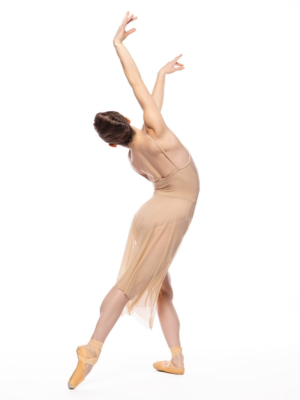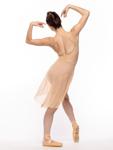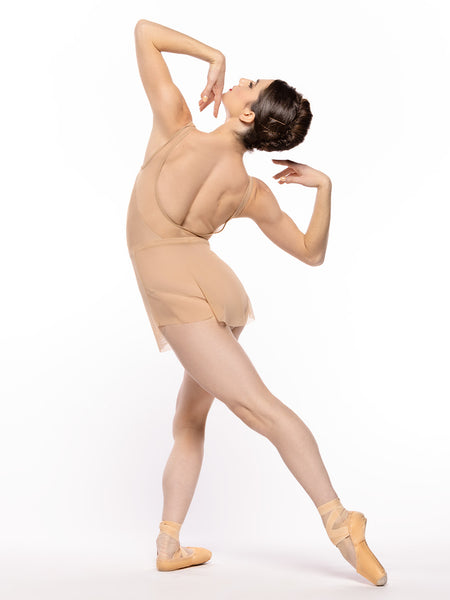 This brilliant skirt style, the Dragonfly, accents any leotard with its divine drape. Now available in Tan Mesh.