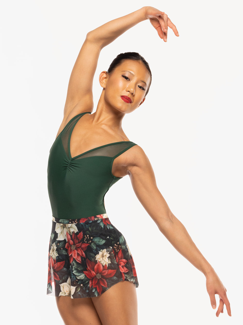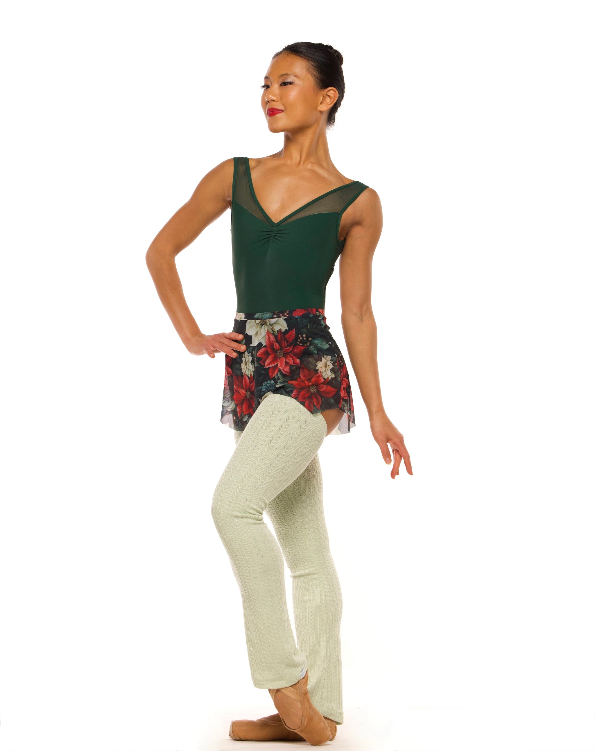 Embrace the holiday season with our classic Tulip Skirt, now available in a beautiful Poinsettias mesh! This vibrant print captures the spirit of the season and pairs perfectly with your favorite leotards. For a complete festive look, style it with our Fabiola Leotard Hunter RTW, Helena Leotard Hunter RTW, or any Black, Cream, or Red leotard in your collection, including our new Poinsettias leotards!