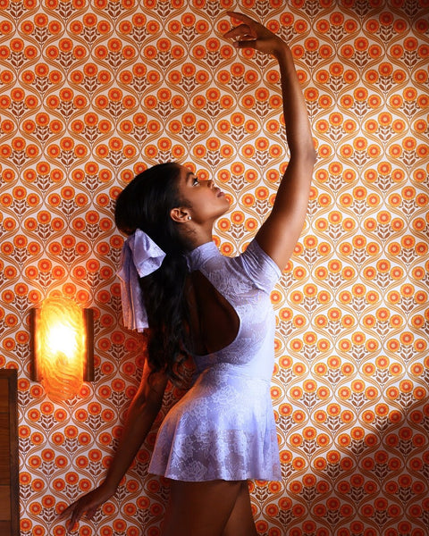 Dream on in our pinky-peach Vinzant Blossom Lace. With its sweetheart neckline, above the elbow sleeves, and Blossom Ivy Lace, you’ll be feeling peachy keen. Complete the set with a Tulip Skirt Blossom Ivy Lace RTW!