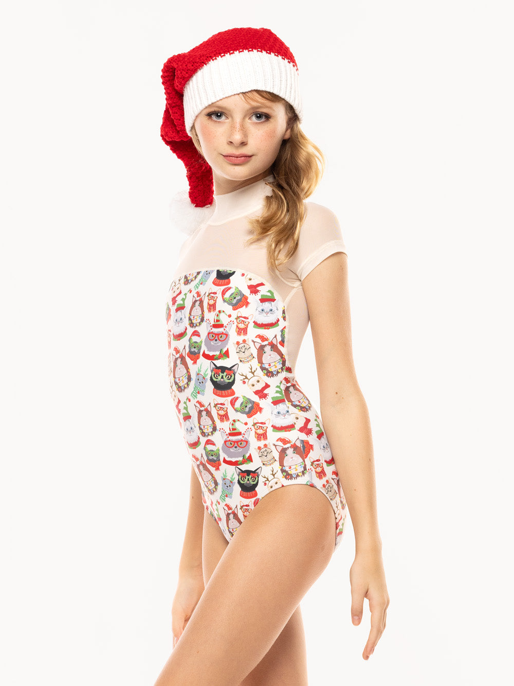 It’s a Cat Lady Christmas here at Eleve Dancewear! This adorable leotard, featuring playful cats in festive attire, is the perfect way to show off your love for feline friends. Pair it with one of our cream mesh skirts for the purrfect holiday look!