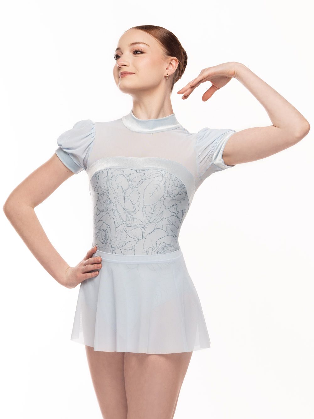 Model 1 and 2 are wearing leotards and skirts in adult size S.