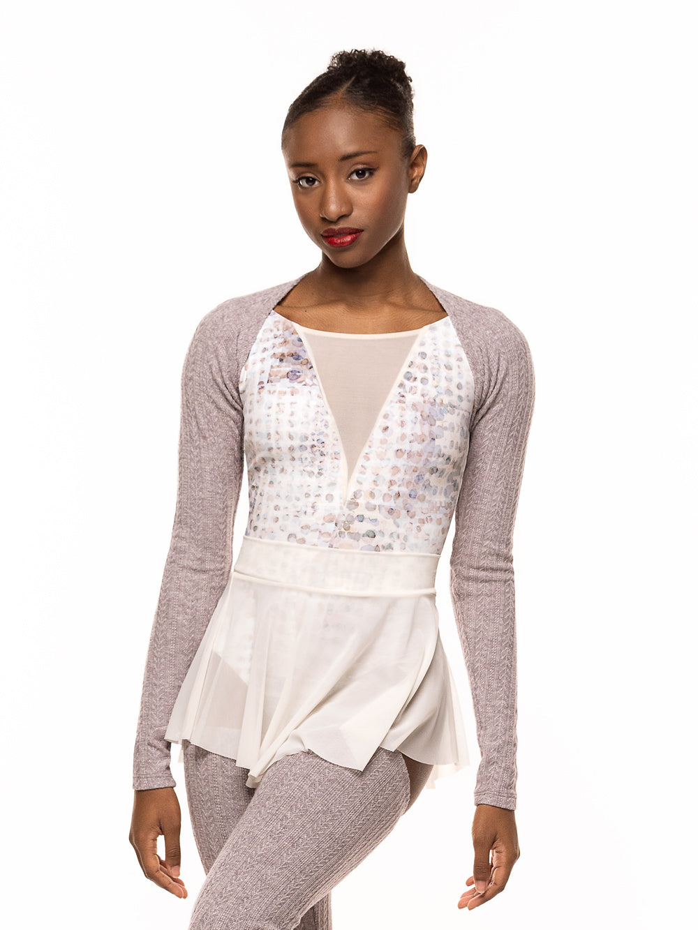 Model is wearing shrug and ankle warmers in Adult size XS/S and leotard in Adult size XS.