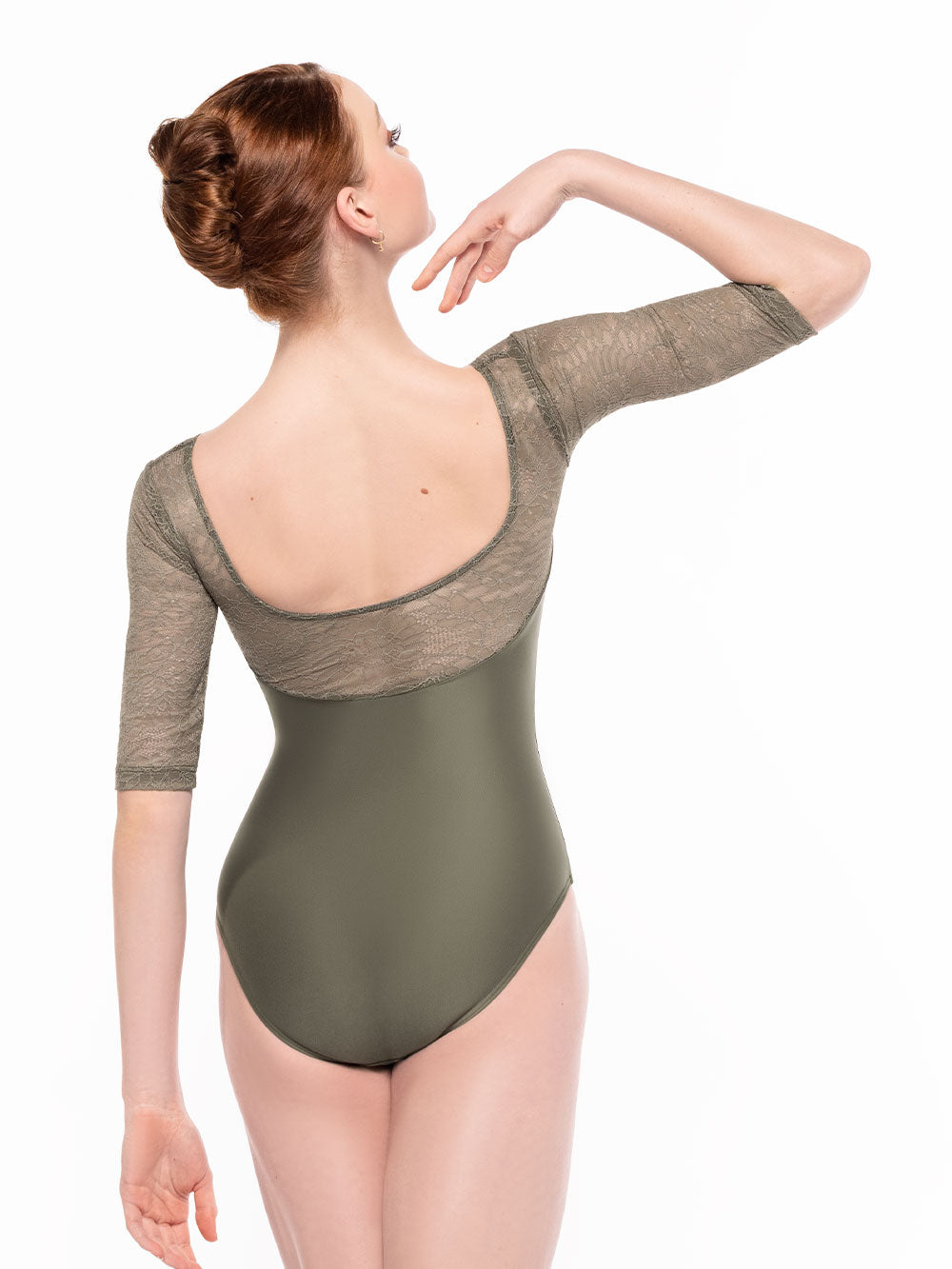 One of our most popular styles, the Vinzant leotard features a simply perfect sweetheart neckline, scoop back, and above elbow sleeves in Dusty Olive Zinnia Lace with a Dusty Olive Shiny base. For added elegance, pair with our Vienna Short Wrap Skirt Dusty Olive Lace Kids RTW or Back Tuck Skirt Dusty Olive Mesh Kids RTW.