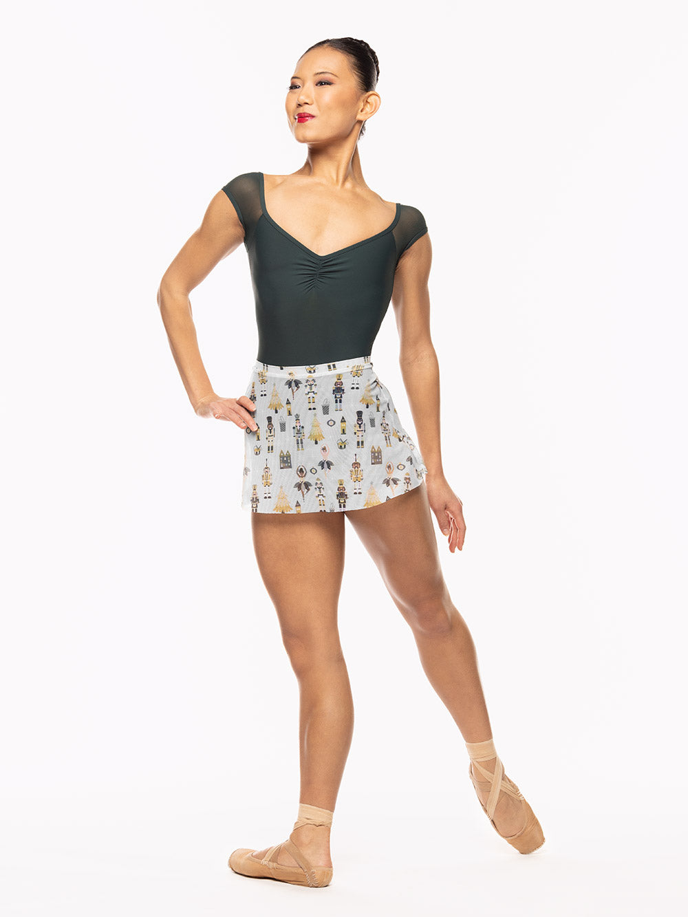 The A-Line skirt is a must-have in every dancer's wardrobe! It's versatile, fashionable, and easy to slip on without ribbons getting in the way. This skirt drapes to an A-line, creating a stunning silhouette. Now available in our festive Golden Suite mesh.