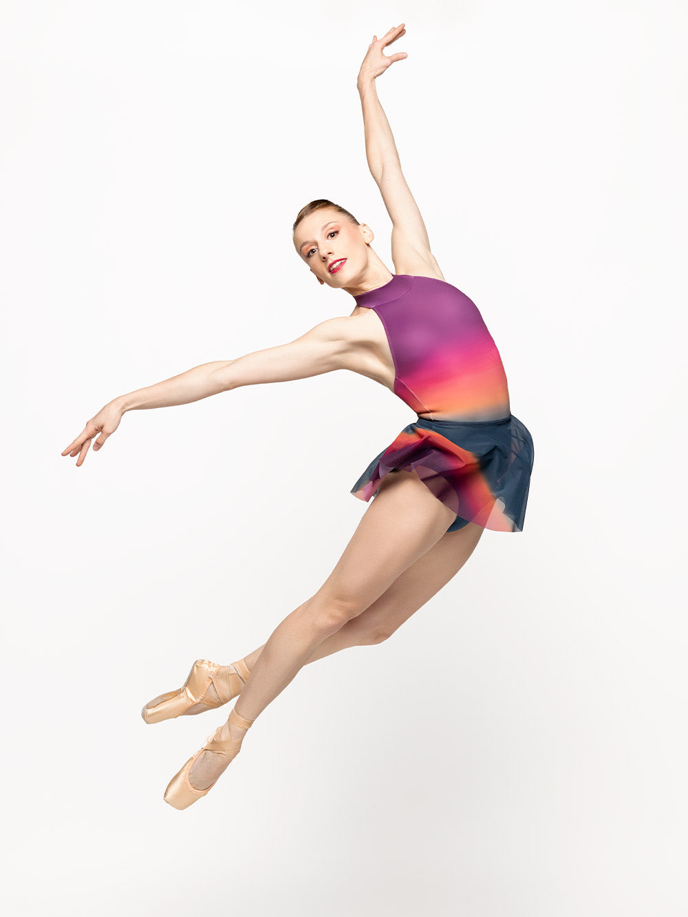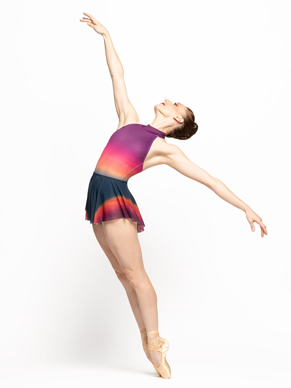 Introducing our Circle Skirt Mini! Now available in our exclusive Ombre print, this short full-circle skirt flows beautifully with every movement. Its elastic waistband ensures a secure and comfortable fit, while the raised hemline at the sides creates a dynamic, high-low effect—perfect for adding a touch of drama to any studio or stage look.