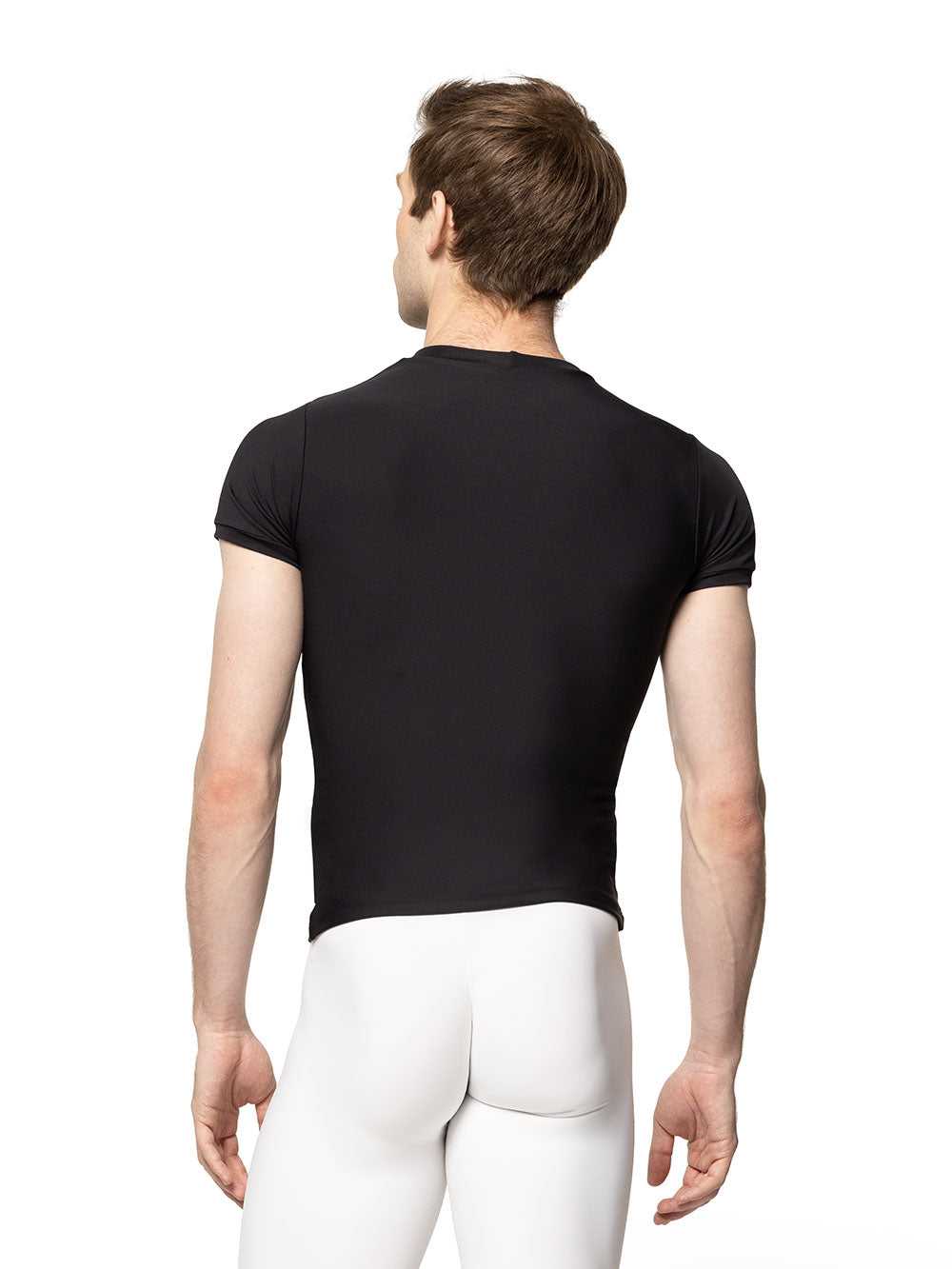 Model 1 is wearing Gabe Shirt Black RTWin size Adult Small with Ryan Tights Stage White RTW.