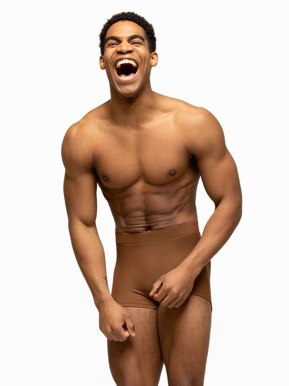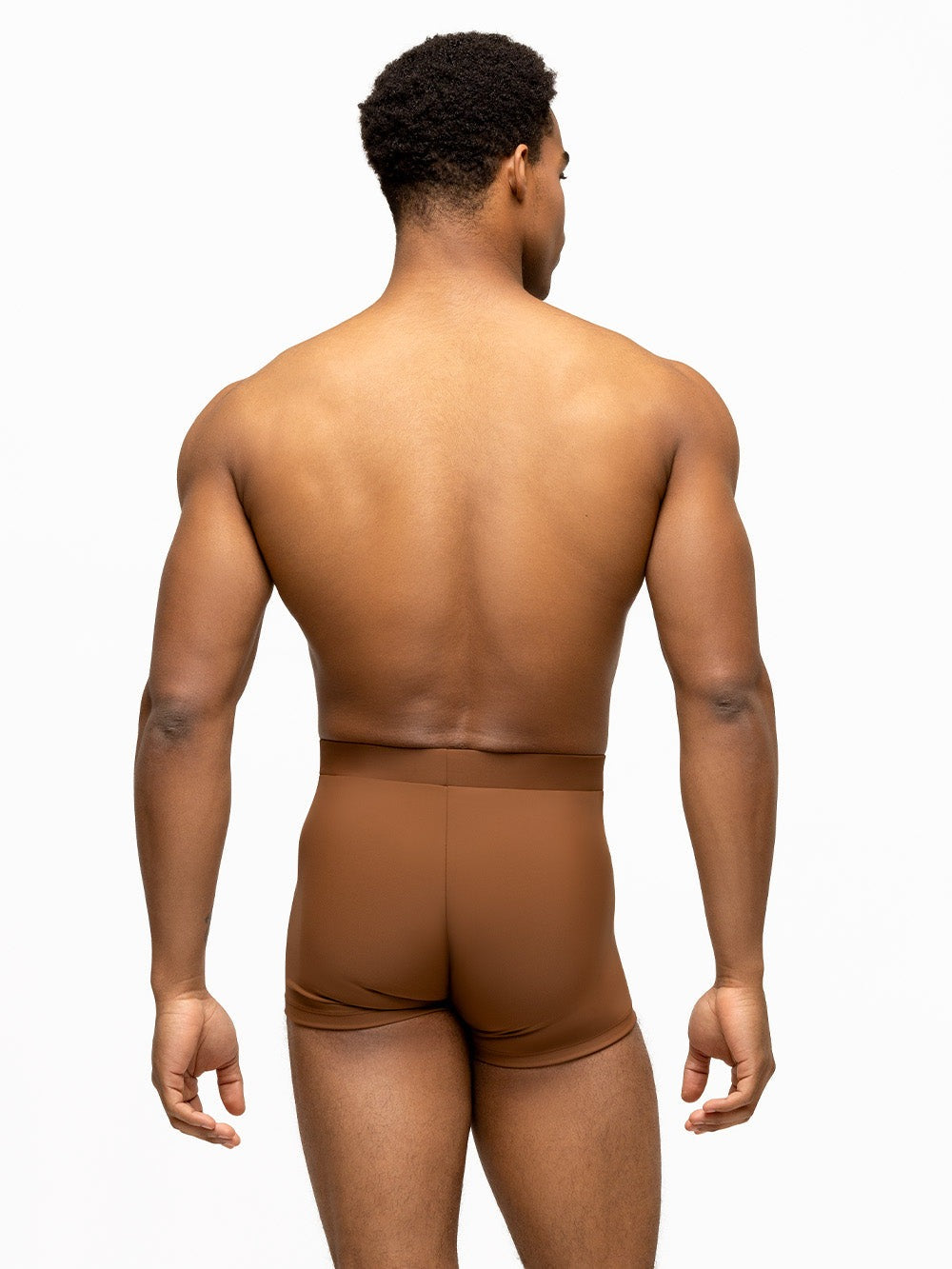 The Eric Shorts feature a 1.5 inch elastic waistband and a booty-length inseam. Now available in Mocha Matte fabric.