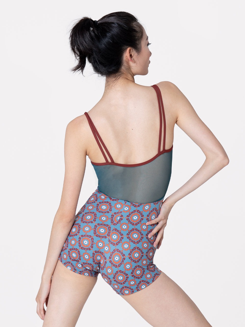 The Kubra is now available in a biketard! This style is incredibly versatile, with its Mars double straps, all-over Affinity Lagoon print, and Lagoon mesh panels!