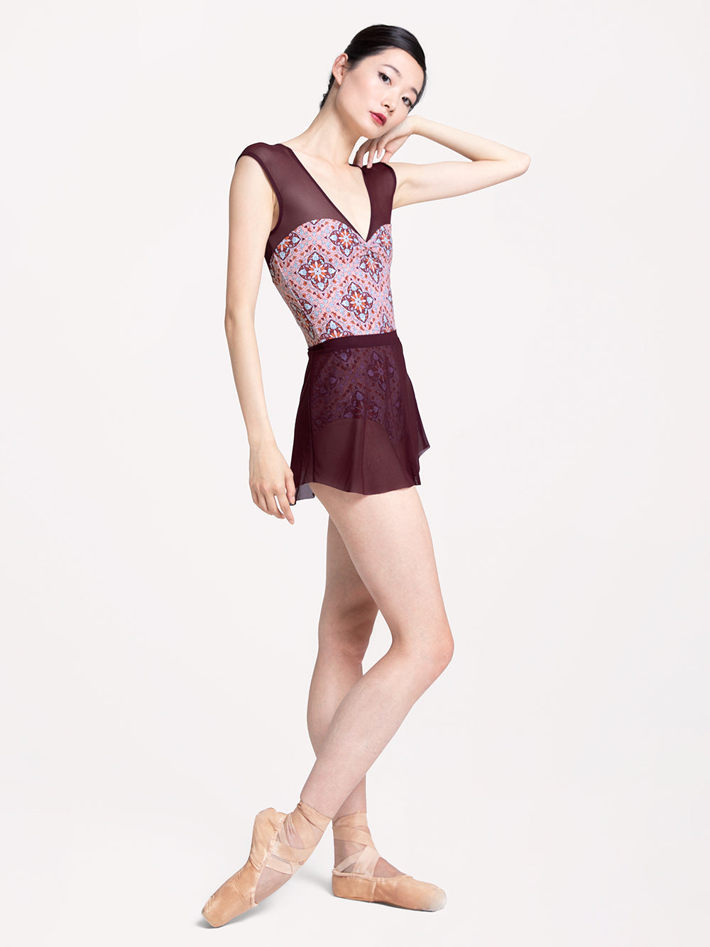 Our classic Tulip Skirt, now in Sangria Mesh, creates an elongated leg line that will complement every look. We've paired it here with Kelsey Medallion Pink RTW.