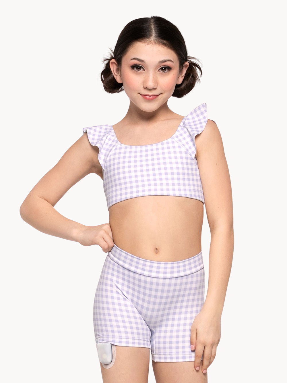 The Ellen Kids Crop Top is an adorable new kids style with a ruffle sleeve detail. Add a pop to this style by customizing yours with a separate Ruffle fabric.