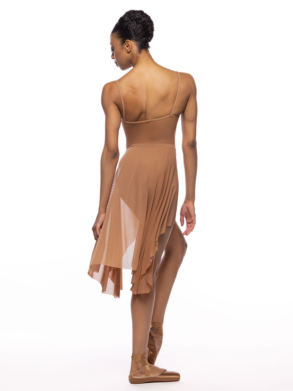 This brilliant skirt style, the Dragonfly, accents any leotard with its divine drape. Now available in Latte Mesh.