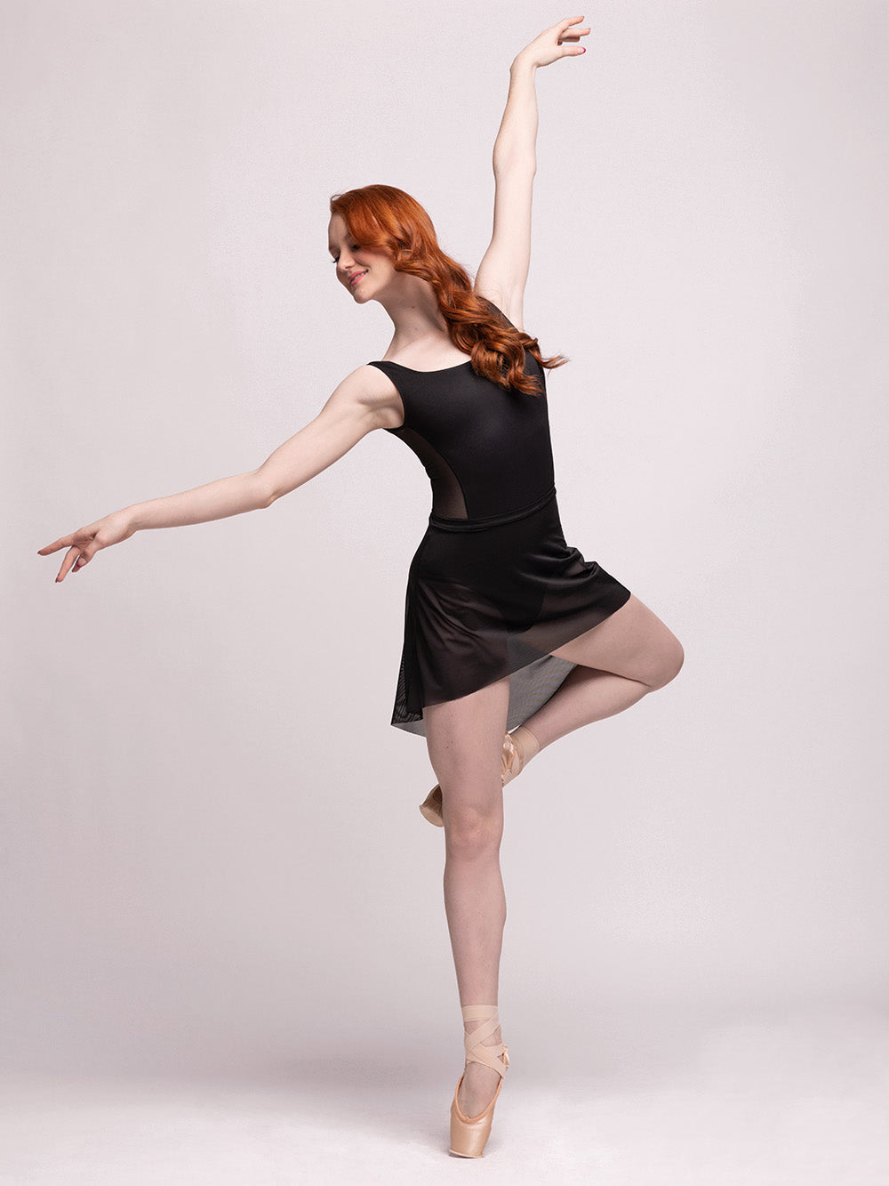 Say hello to every dancer’s wardrobe staple, the Short High-Low Black Mesh Skirt. With its flowy design and neutral color, it’s assured to complement any leotard.
