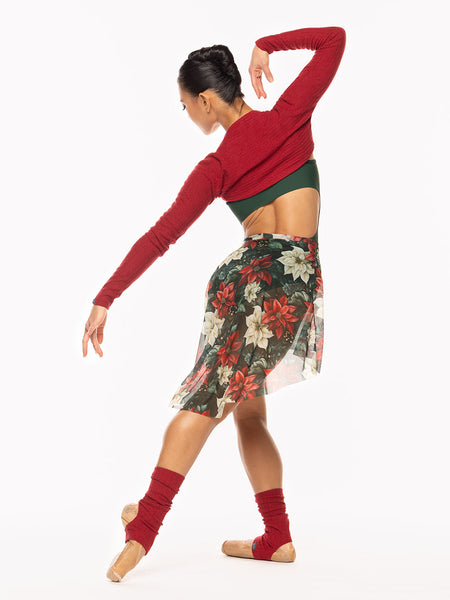 Dramatic High Low Skirt Poinsettias Mesh RTW