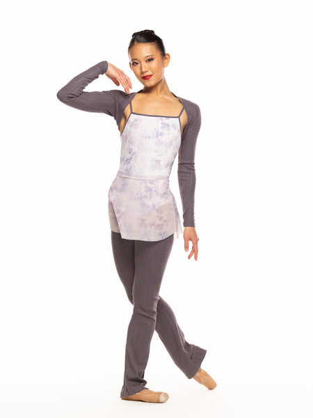 Model 3 is wearing leotard and skirt in adult size XS, and shrug, ankle warmers, and leg warmers in adult size XS/S.