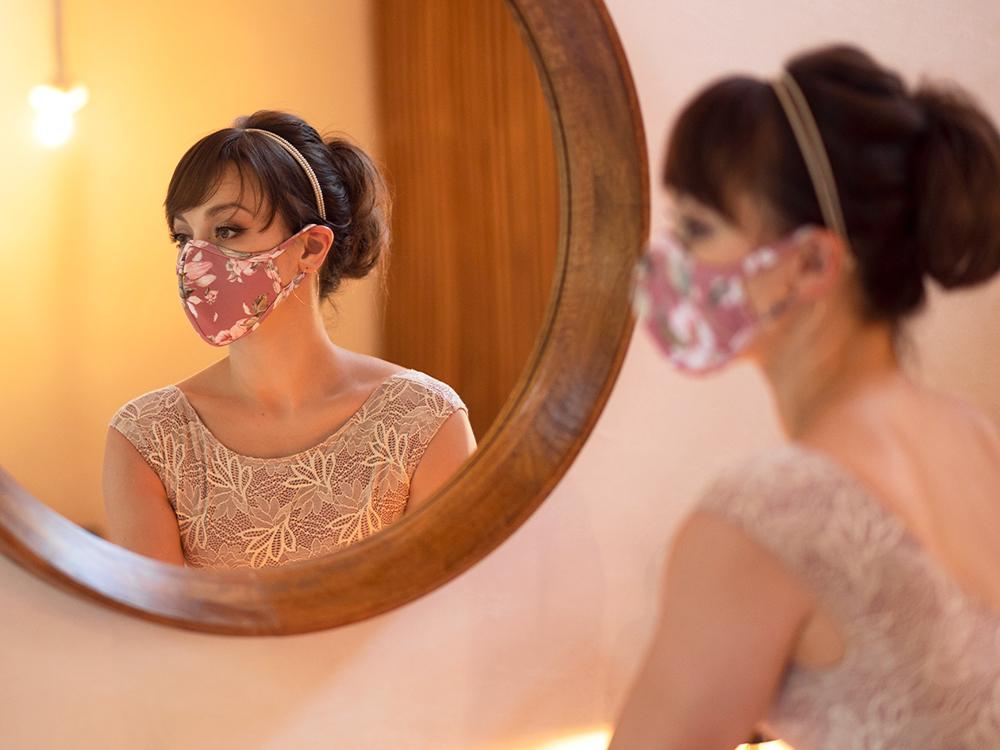 Available as shown. Mid High-Low Skirt in Quartz Mesh RTW and Veranda Barrier Face Mask RTW sold separately.