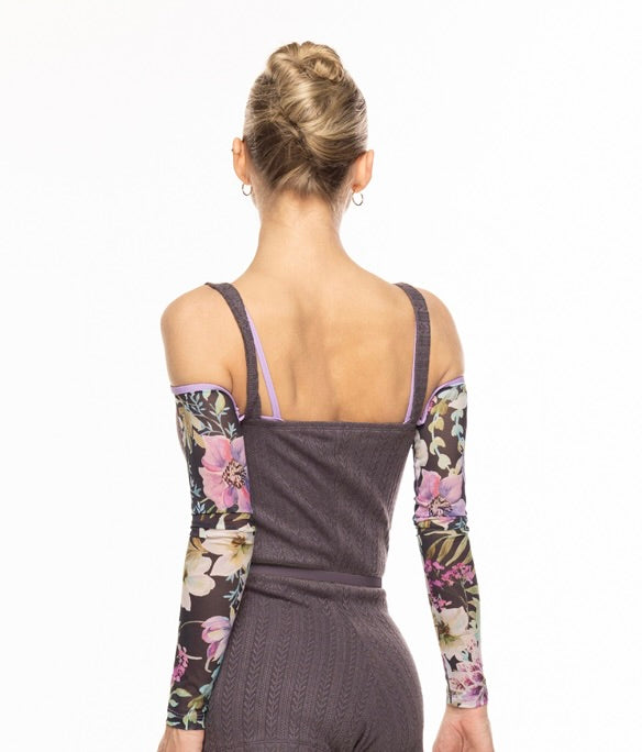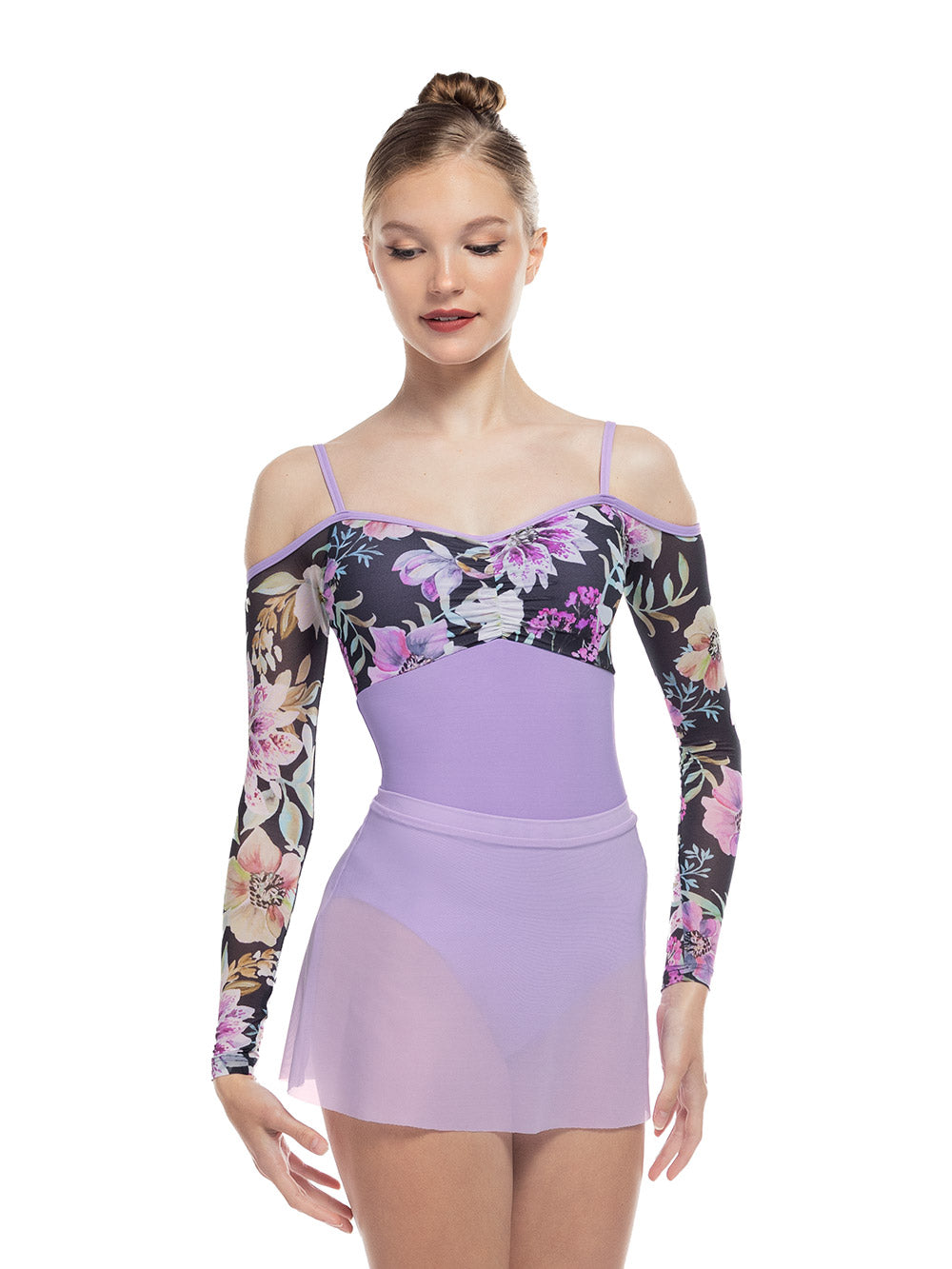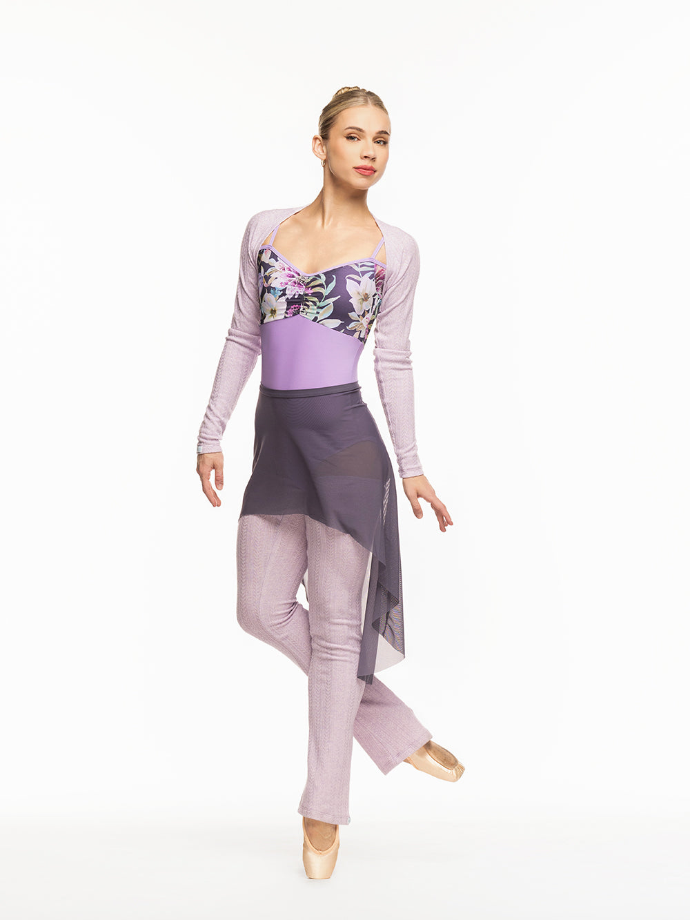 Model 2 is wearing Skirt and Leotard in Adult S, and Shrug, Ankle, and Thigh High Leg Warmers in size Adult XS/S. Also shown wearing the Deven Unitard in size Adult Small.