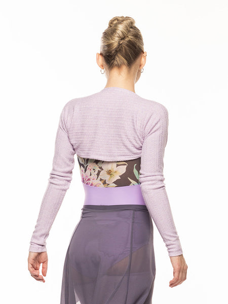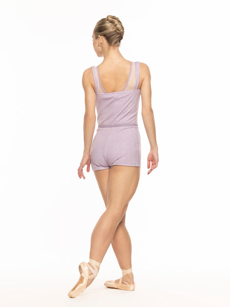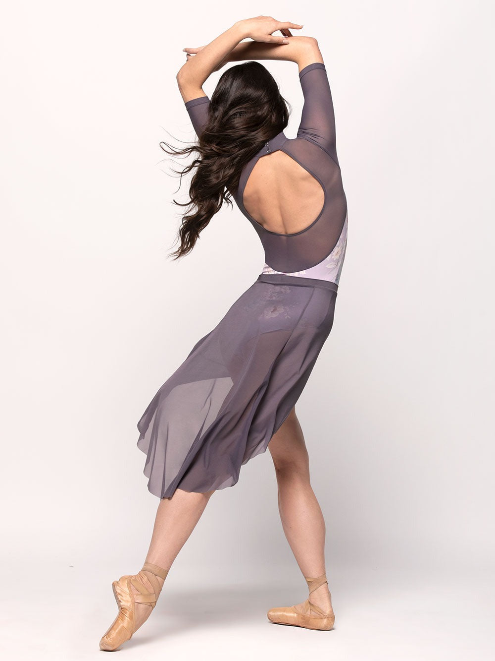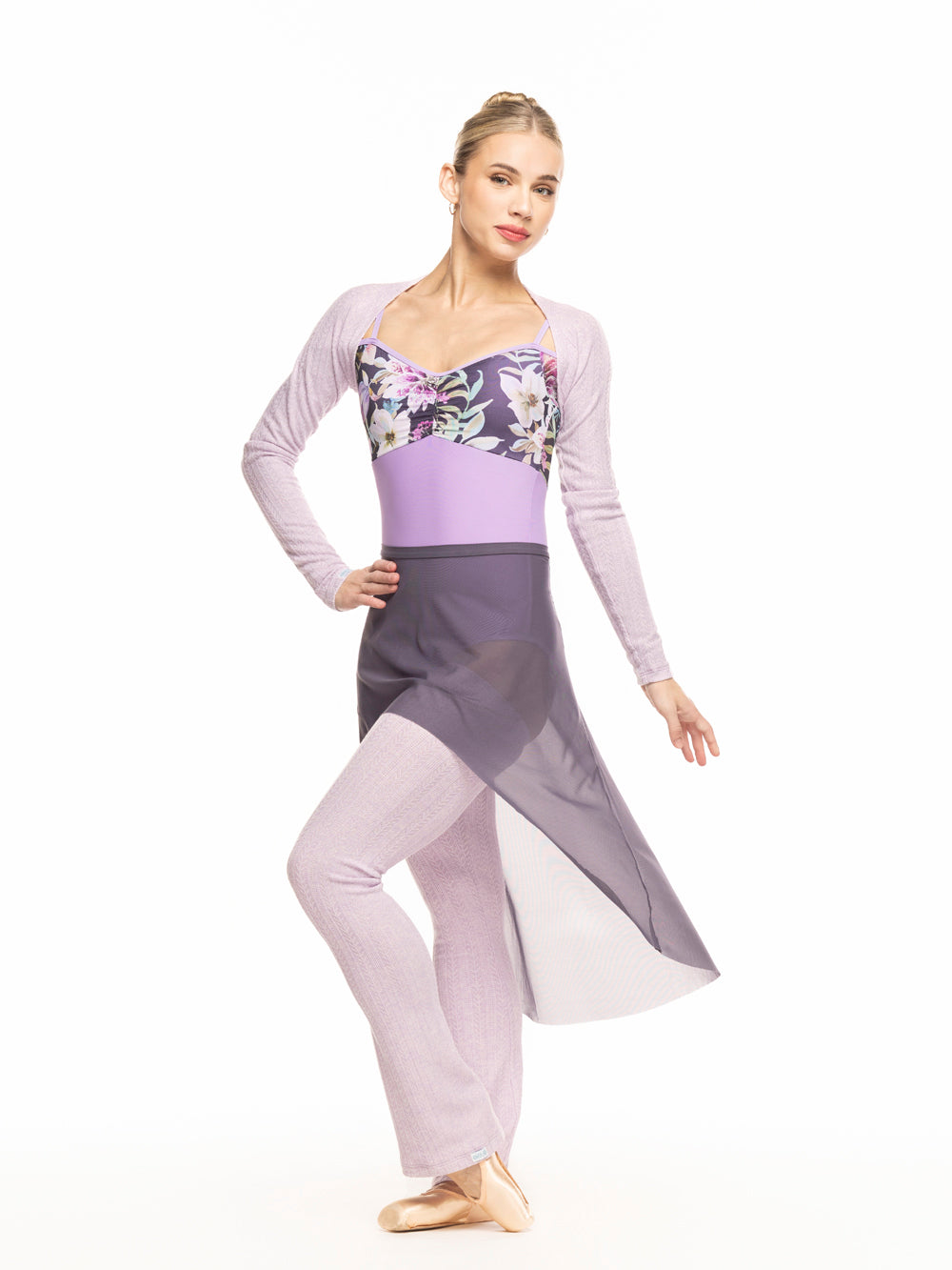 Model 5 is wearing skirt and leotard in size Adult S, and Shrug and Thigh High Leg Warmers in Adult XS/S.