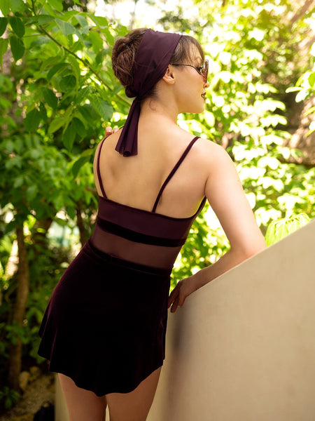 Feel like you’re in paradise wearing the Stella in Dark Romance. Enrapture the audience in the sultry gray-purple-colored base layered with romantic blooming florals. Shown with the matching Mid High Low Skirt in Dark Romance Mesh.