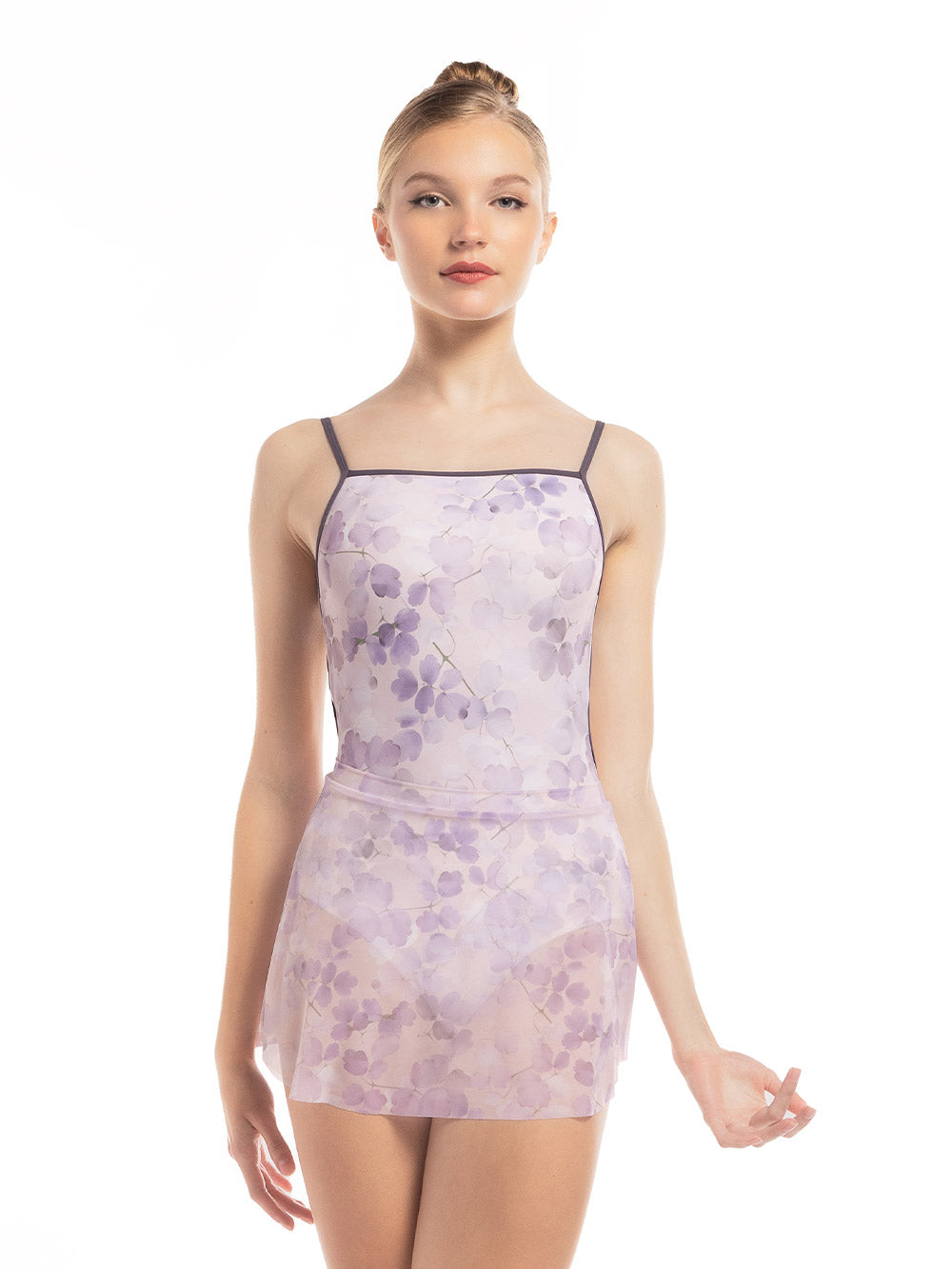 Model 1 is wearing skirt in adult size S and leotard and wrap top in adult size XS.