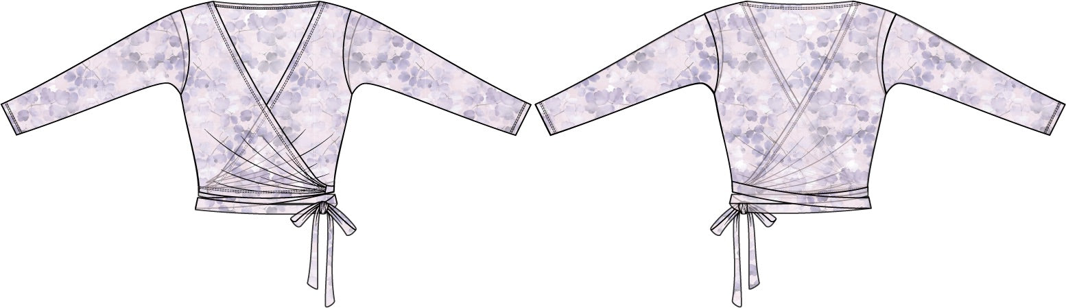 Model is wearing wrap top and skirt in adult size S and leotard in adult size XS.