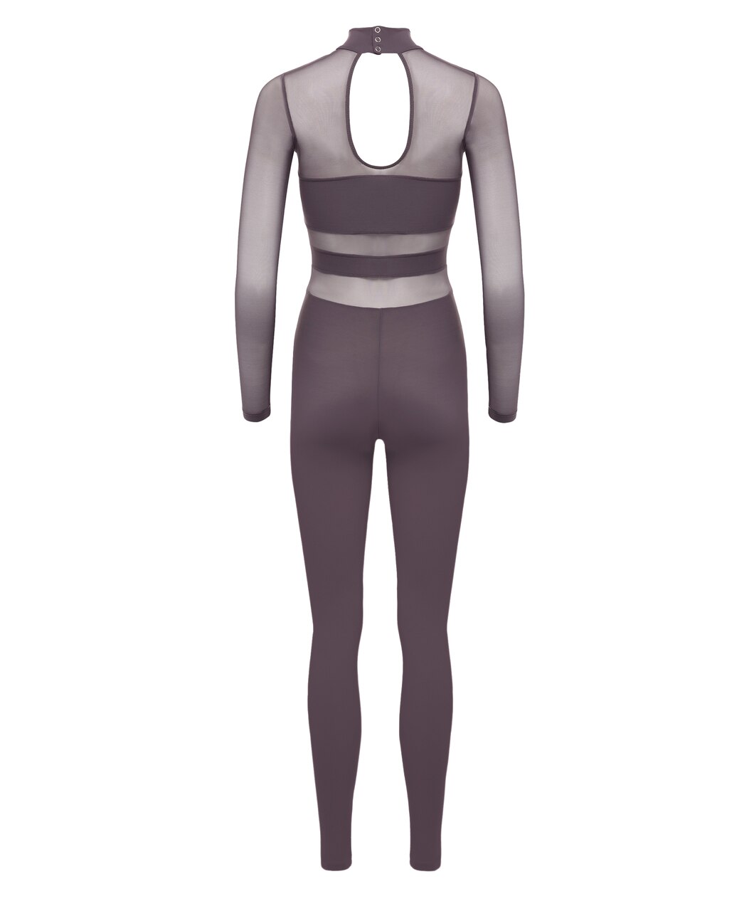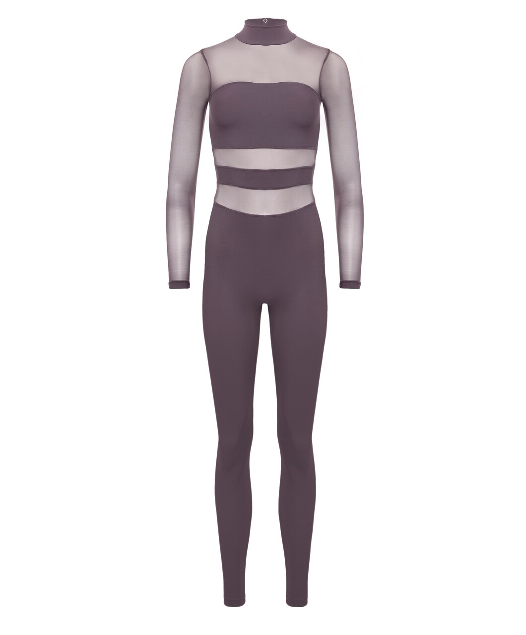 Sample is made with S-24.8 Mystic Matte Base, Bust, & Middle Stripe as well as Collar, with M-24.8 Mystic Mesh Top Front, Top Back, Mesh Stripes, and To The Wrist Sleeves.