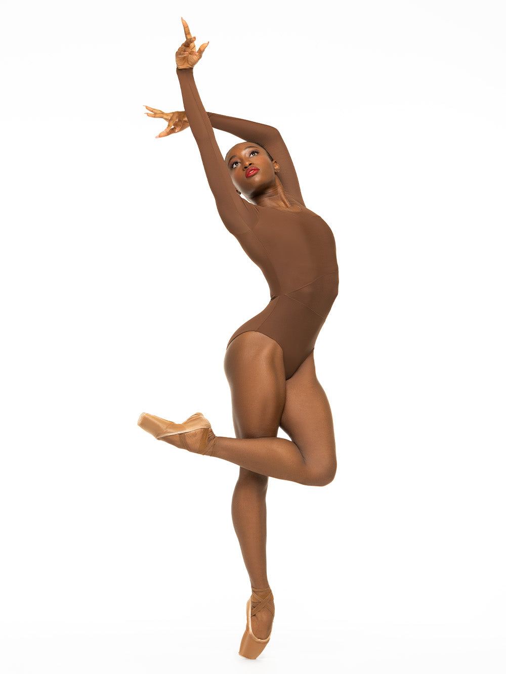 - Model 2 is wearing Amelie Caramel Leotard RTW in size Adult Small.