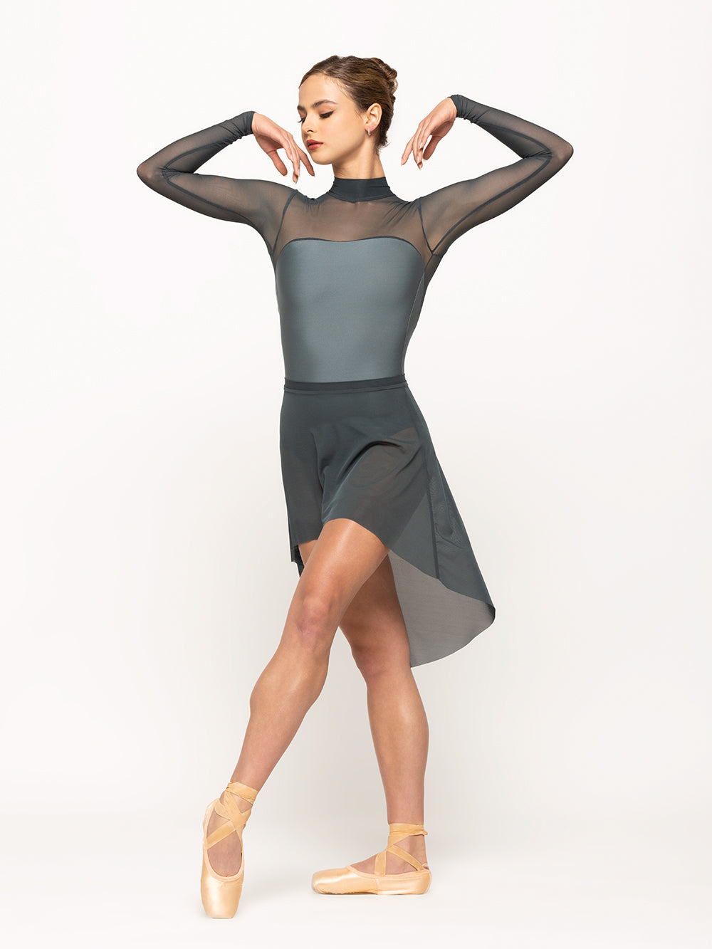 Add some drama to your dance bag...the Dramatic High Low Skirt is the absolute perfect style to wear on stage or in the studio. Order today to complete the look of your favorite Elevè!