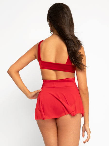 Both Models are wearing leotard in size Adult XS and skirt in size Adult S.