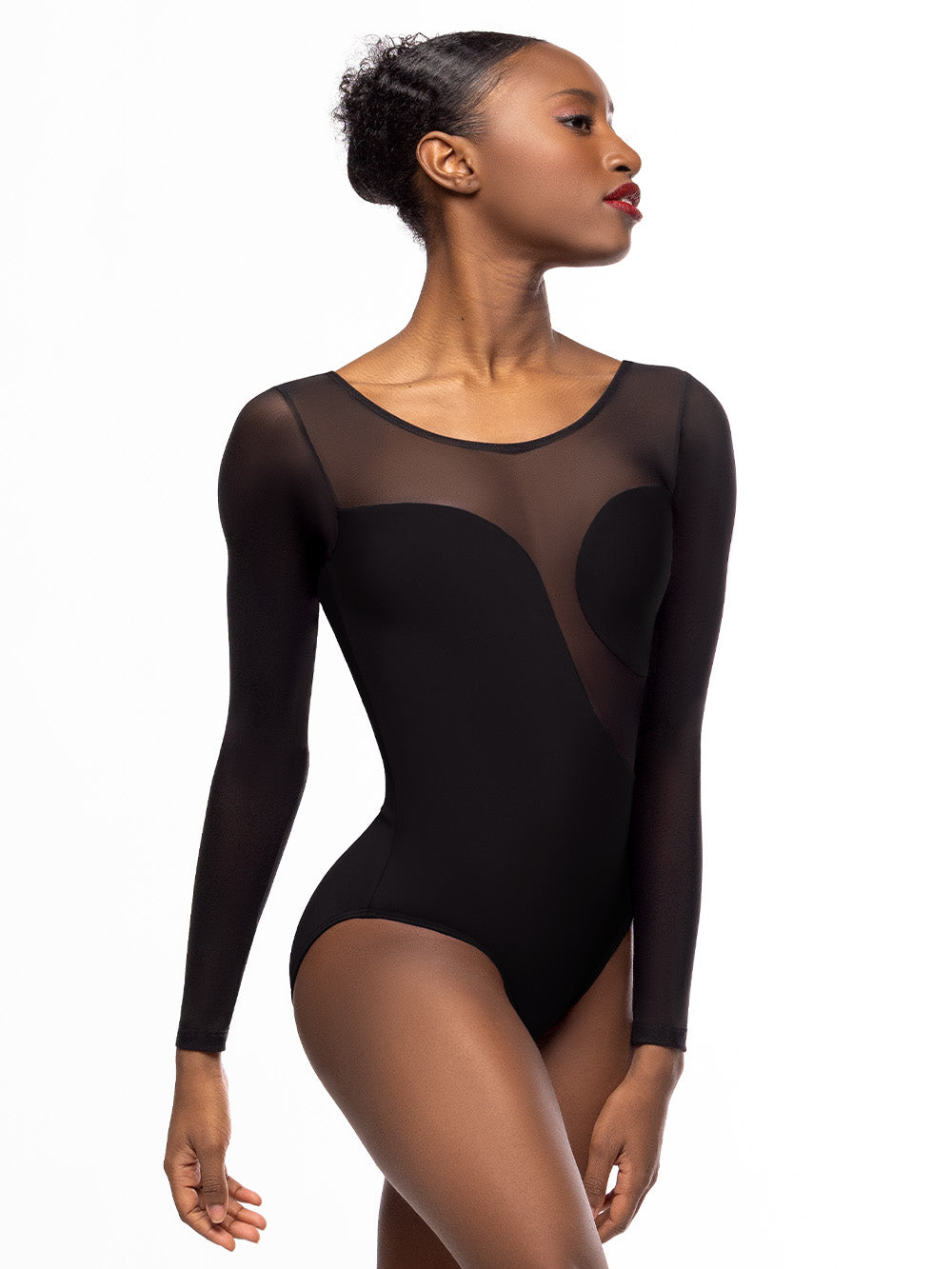 Meet Luna! The Luna Leotard adds a little yin to your yang with its contrasting solid and mesh panels in our matte Black fabric and Black Mesh. Pair it with your favorite skirt or tights for a striking look in the studio or on stage. Add a dash of intrigue with our Back Seam Tights Black Mesh Kids RTW.