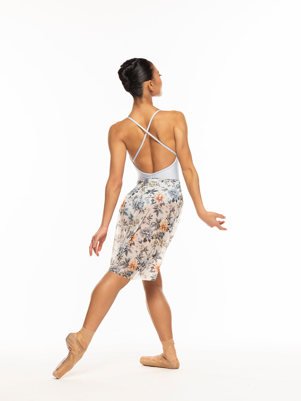 Model 1 is wearing a leotard and skirt in adult size XS.