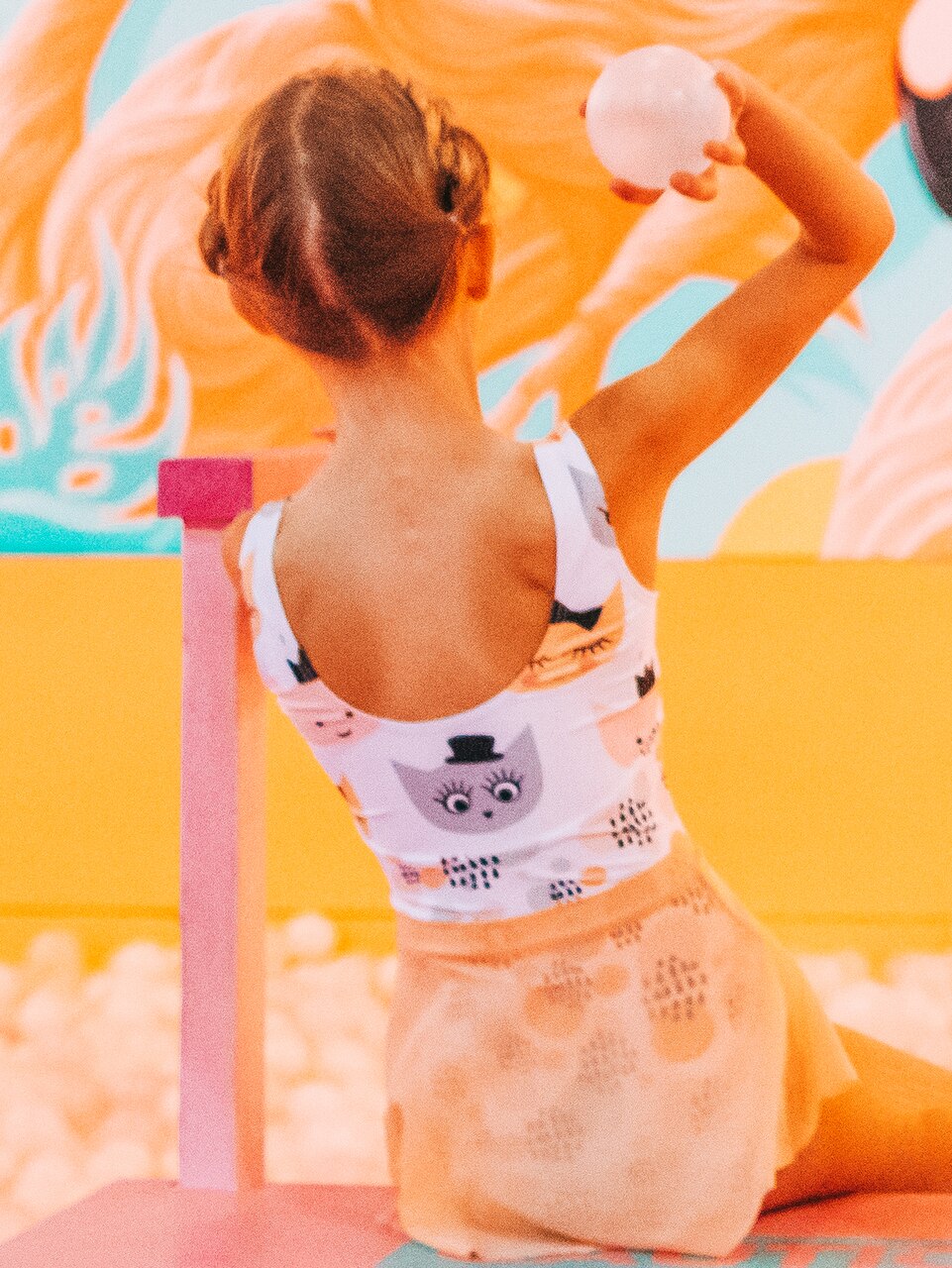 A bright Peach Mesh skirt to add a pop color to any look. We've paired it with our Nadine Kids Top Cat RTW, what will you pair it with?