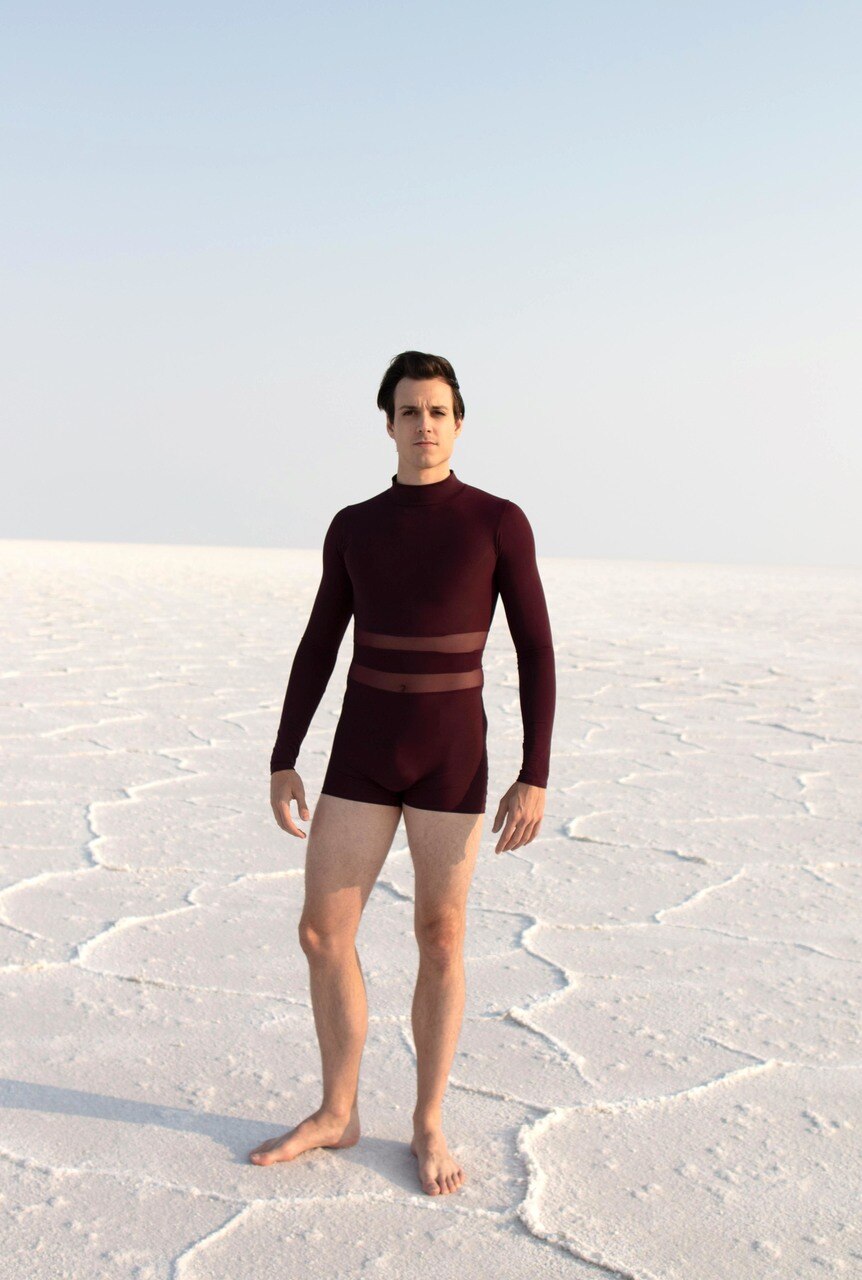 A high neckline with two center stripes gives the Jeremy Biketard a stylistic look that is the perfect design to complement our Zoe Leotard. Choose up to three fabrics and two sleeve lengths. Comes with a back zipper in your color choice.