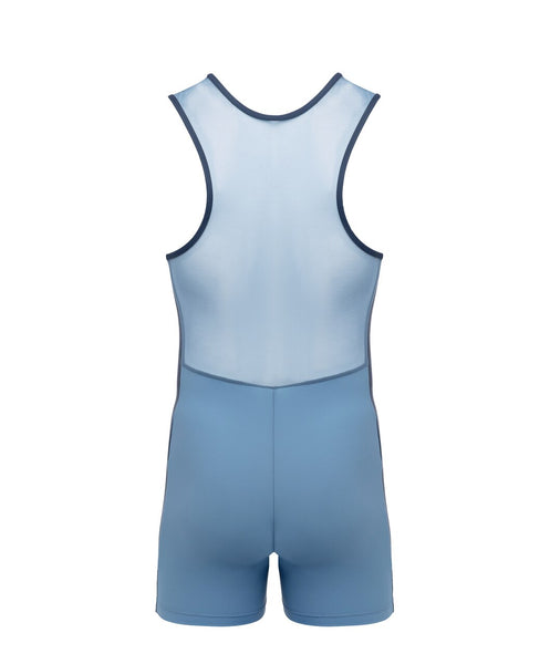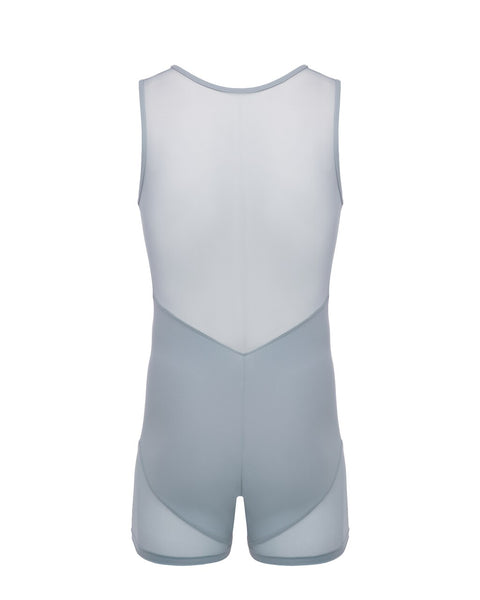 - Model 2 is wearing Booty Length option with S-58.5 Dark Grey Base and Collar with M-59 Black Mesh Long Sleeves and Stripes.