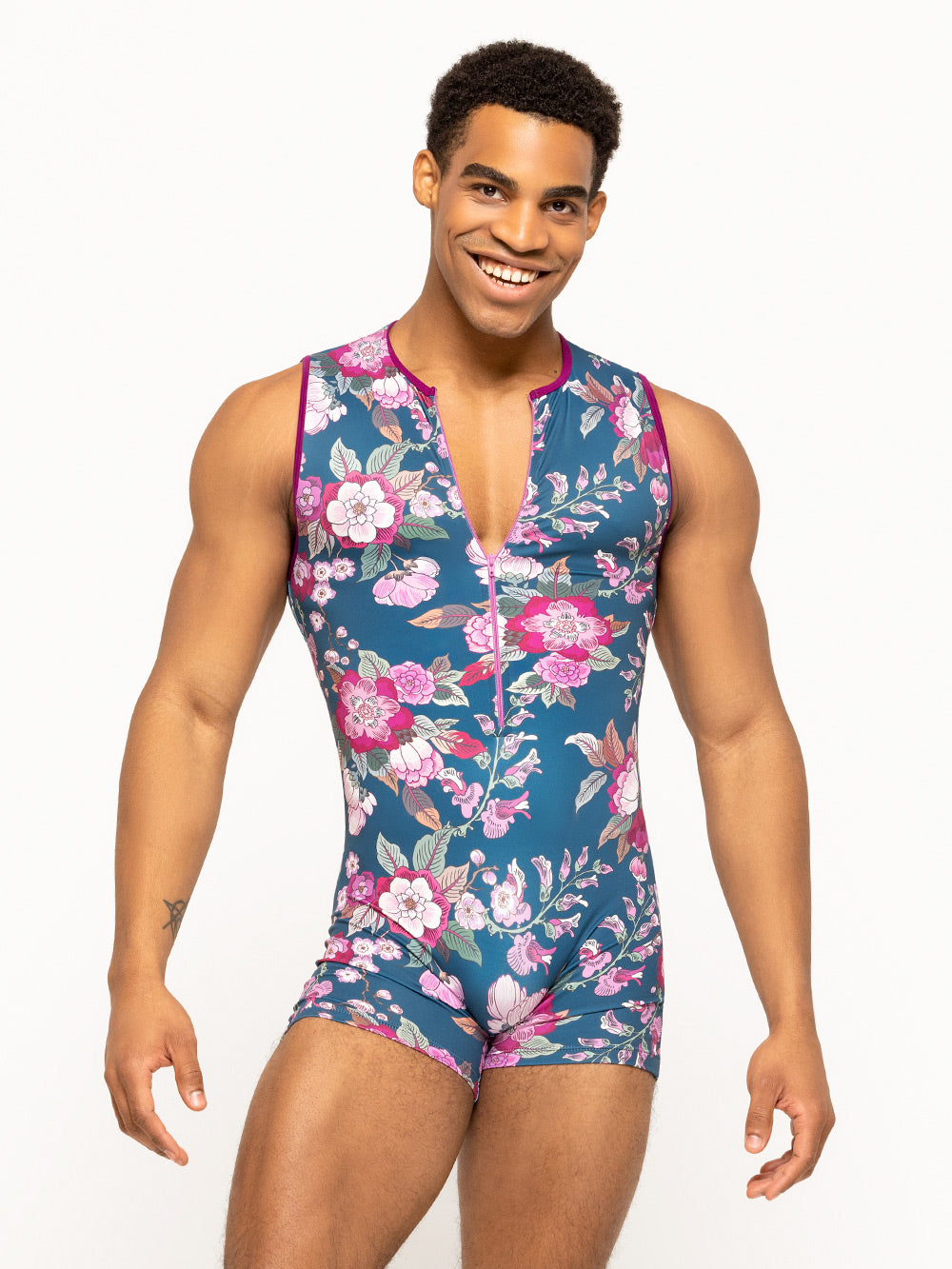 - Model 2 is wearing Nathan Biketard Intertwined RTW in booty length with RTW-exclusive Intertwined Base and S-26.1 Wisteria Matte Trim and Zipper.