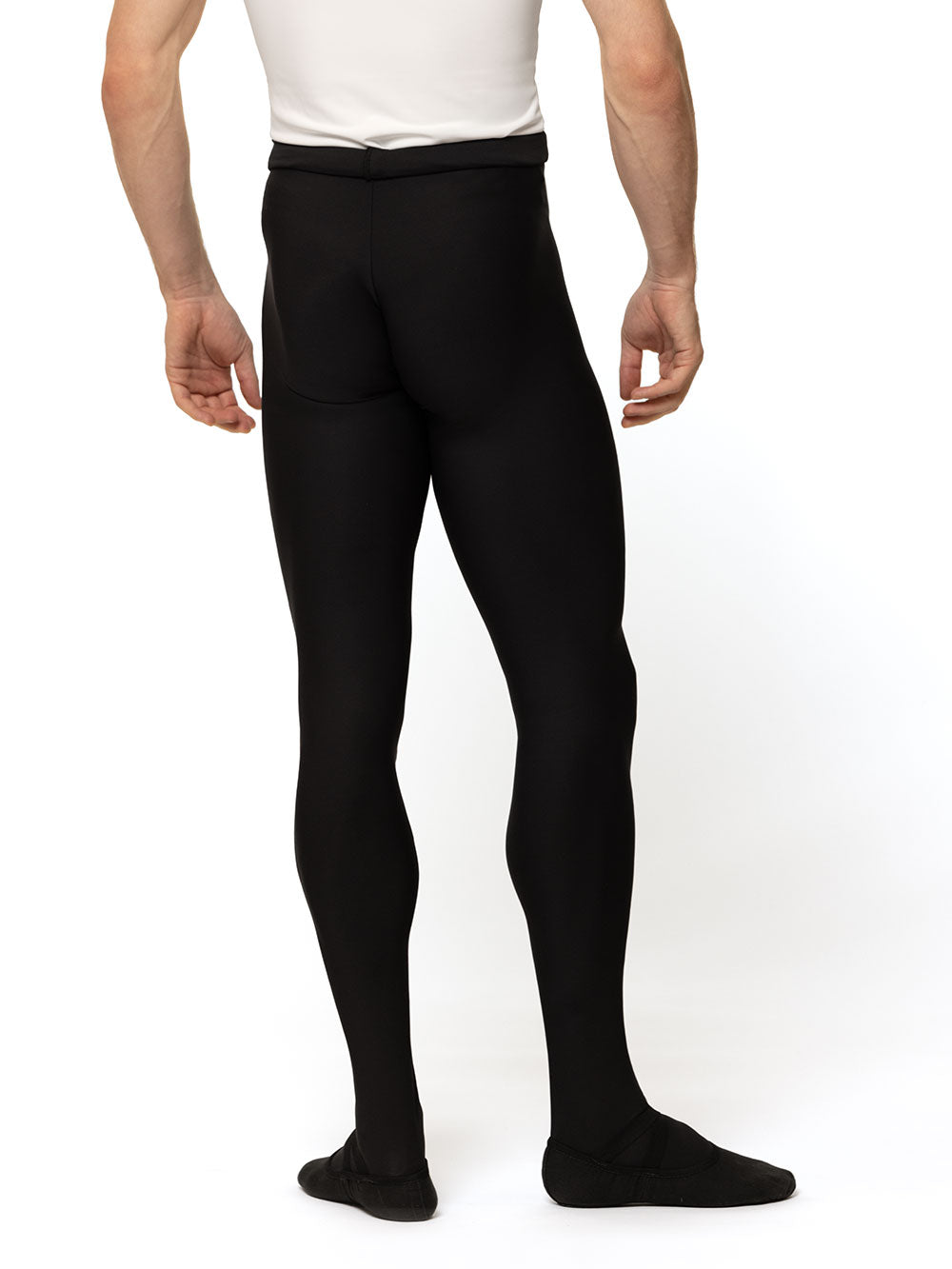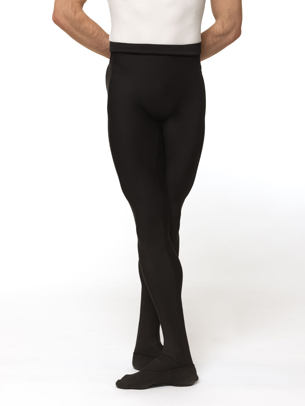 These footed tights in soft Black feature a wider elastic waistband and seamless front. Perfect for class or the stage!