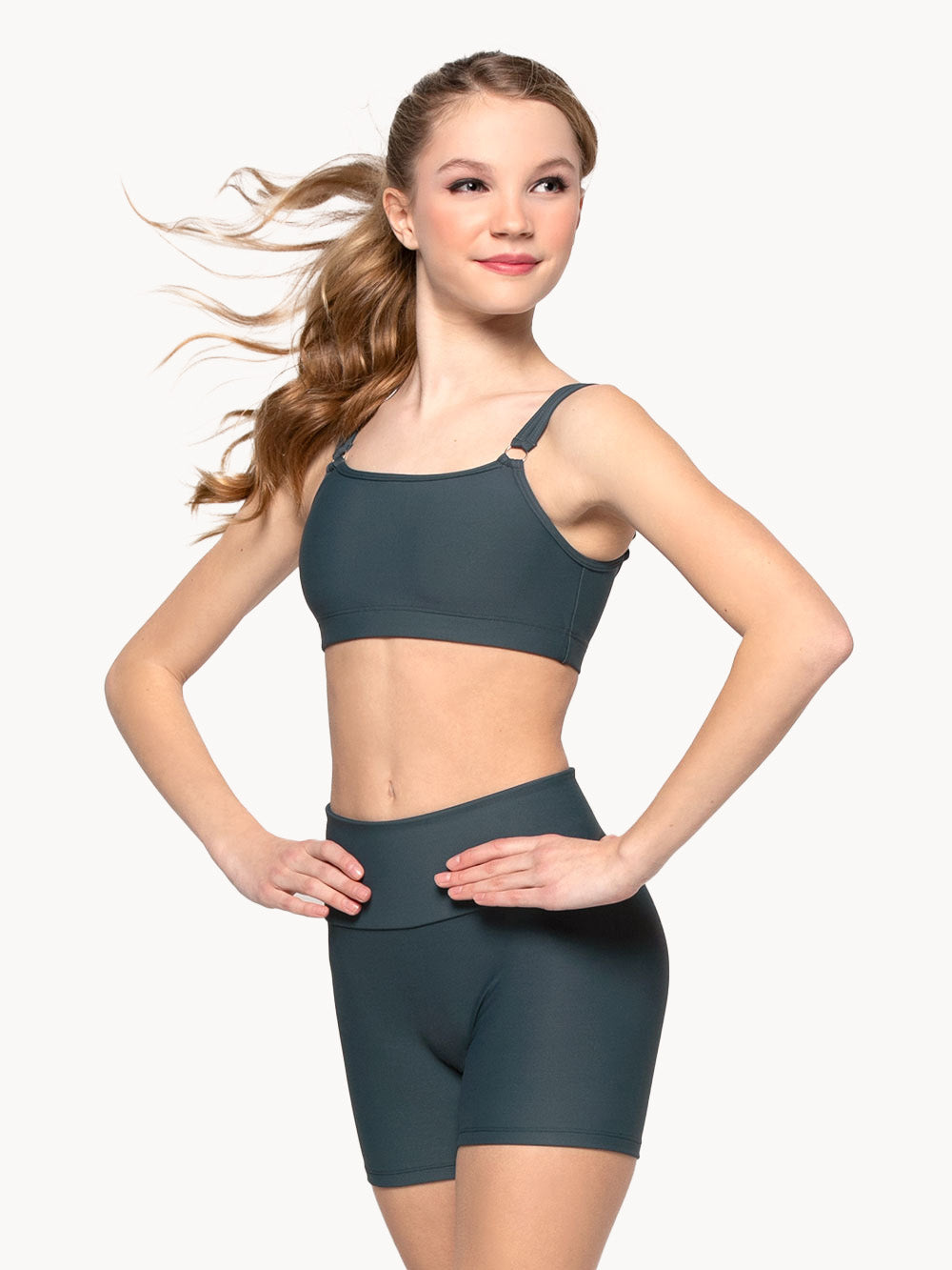 Model is wearing Claire Shorts 4.5" Soft Symphony and Farrah Crop Top Kids Soft Symphony size CHL.