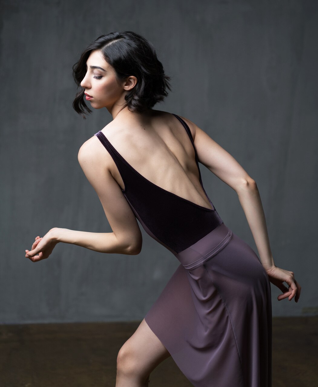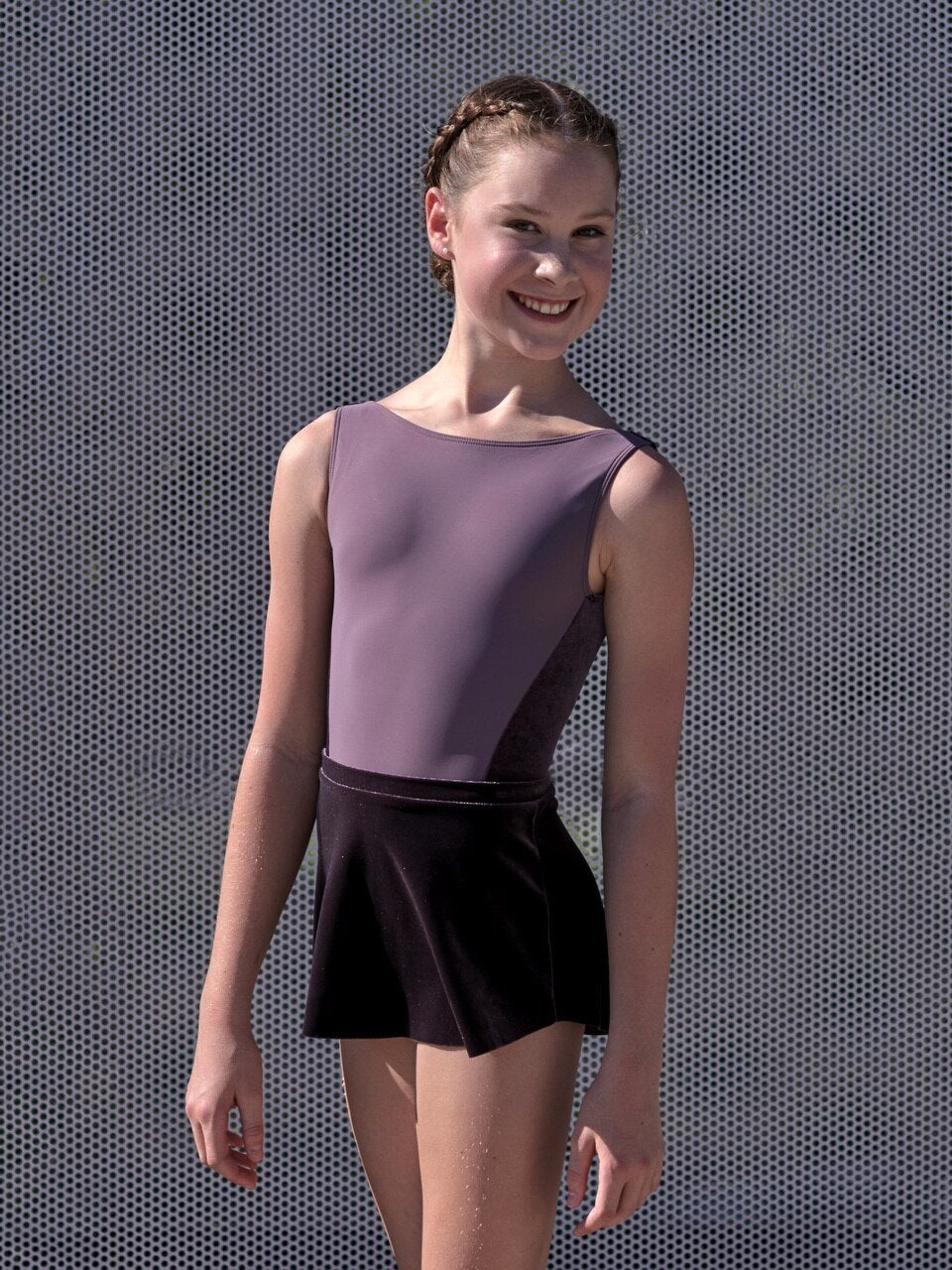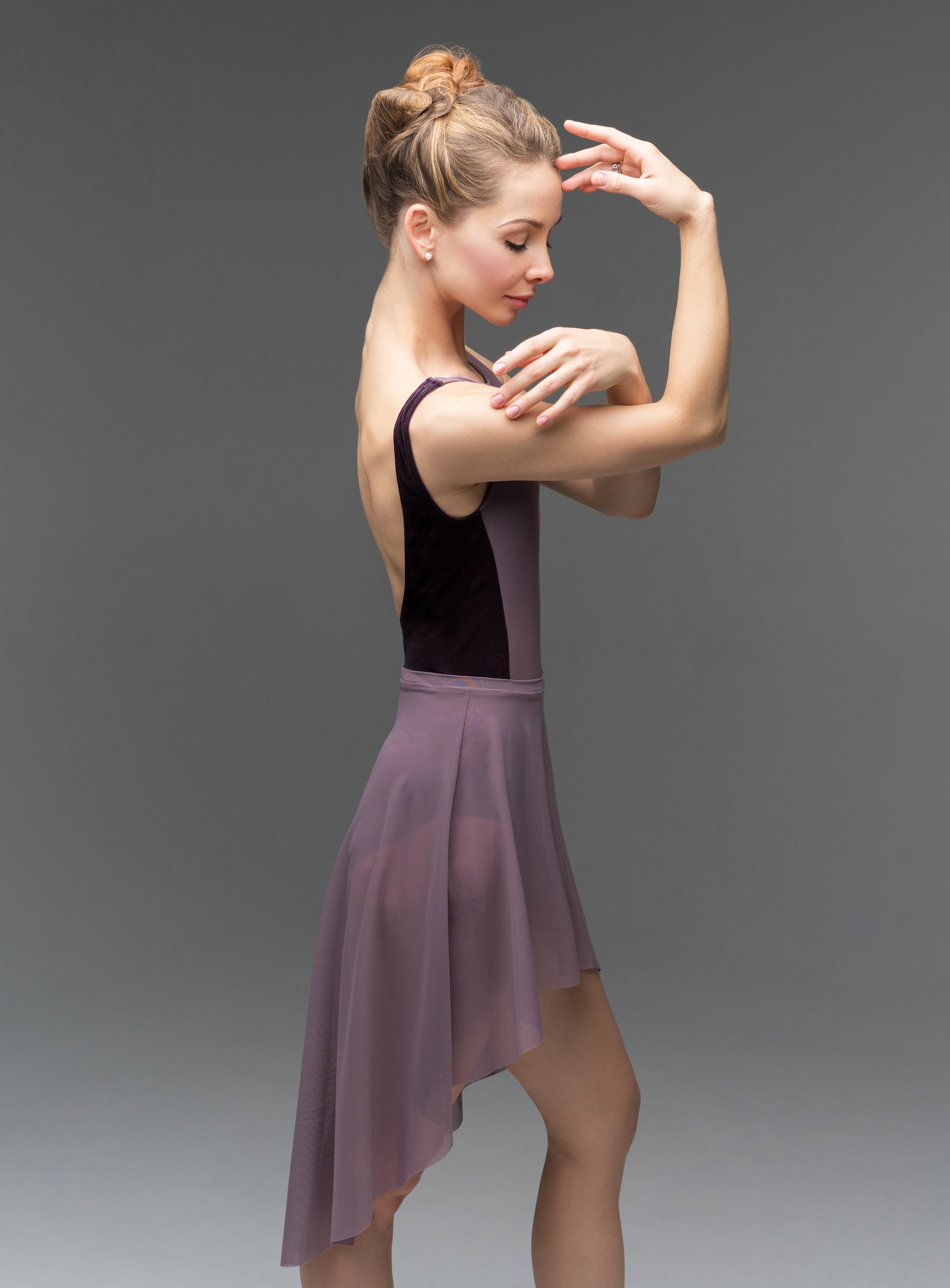Models 1-3 are wearing the Tulip Skirt Mauve Velvet RTW. Models 3-4 are wearing the Dramatic High-Low Skirt Mauve Mesh RTW.