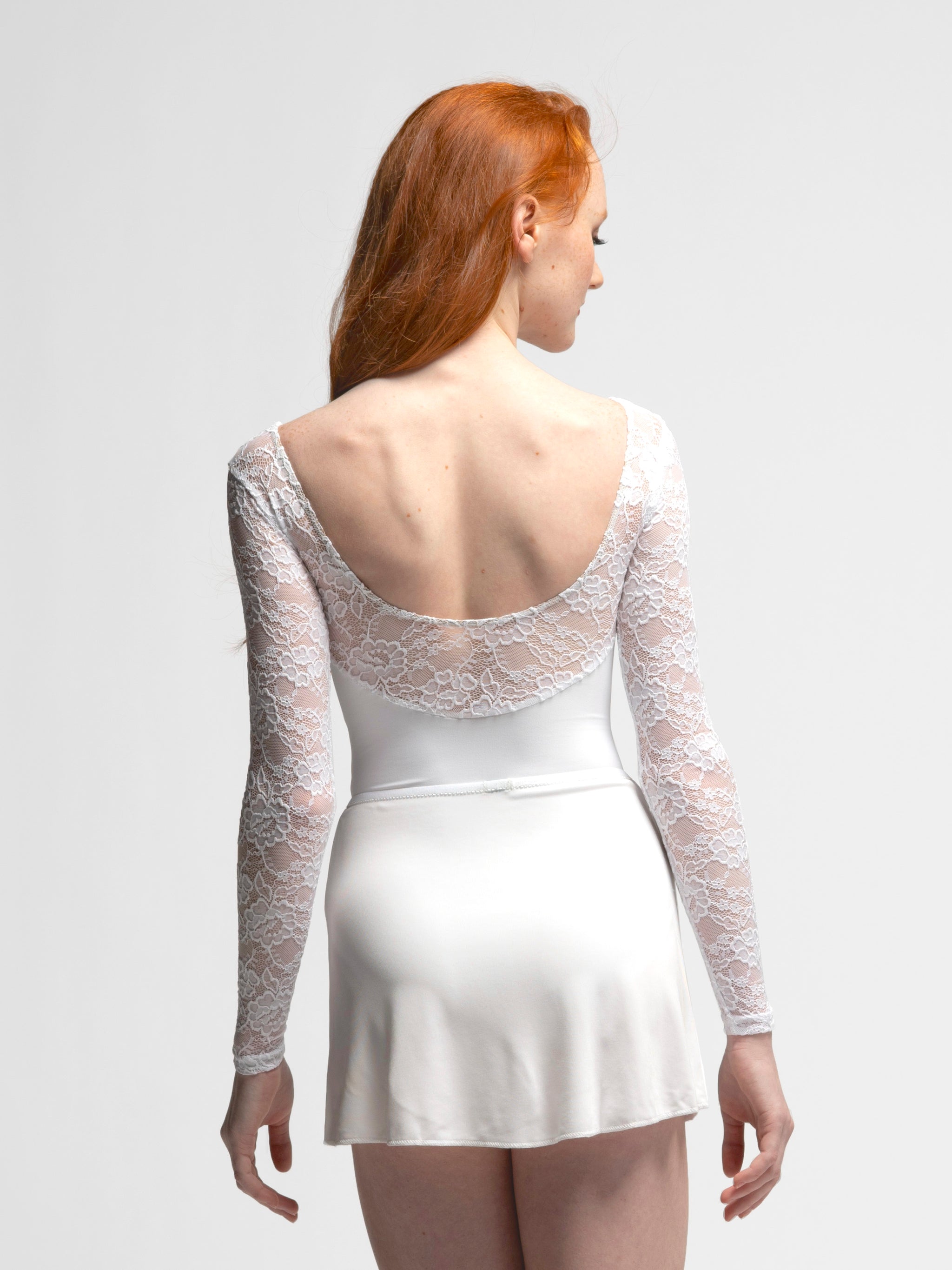 Our most popular style is available in our super soft White Tactel fabric and our beautiful Antoinette White lace in to the wrist sleeves.
