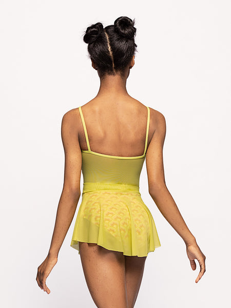 This Flare Skirt Peace & Love Pistachio mesh is an adorable addition to your summer dance wear. You'll stand out in this warm print. We've paired here with Rachel Kids Pistachio RTW.