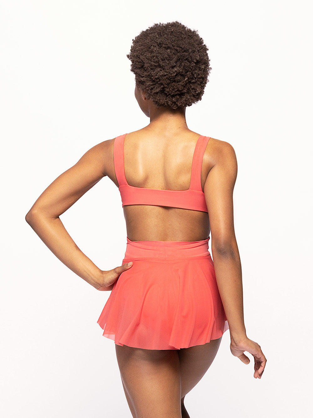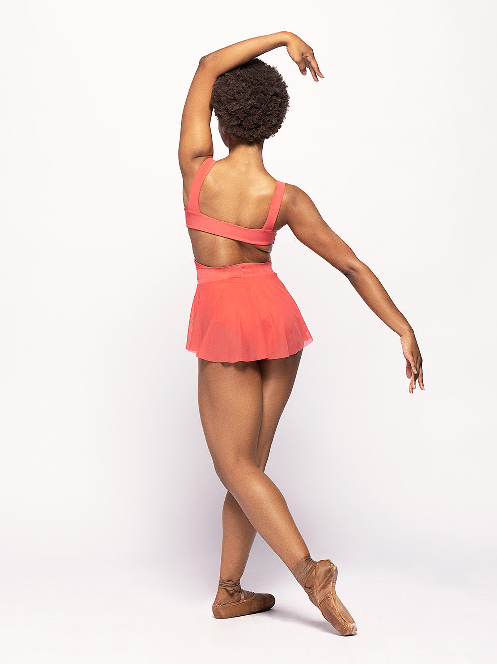 This full circle, low rise skirt silhouette will help accentuate your lines and add movement to any performance. Now available in our juicy new Watermelon mesh to complete your look!