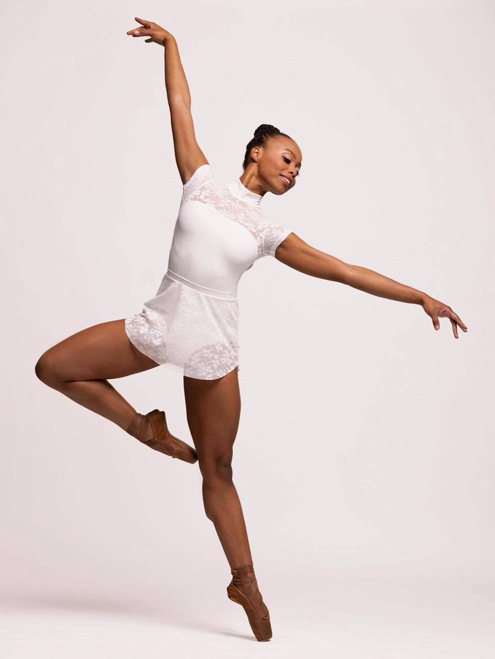 Models are wearing the Elizabeth White Ivy Lace RTW in size Adult XS and Child Large.
