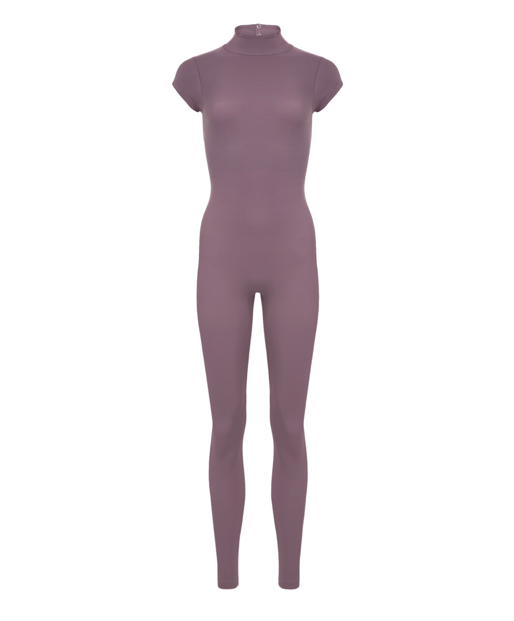 Sample and Model 2 are wearing Unitard Cut in S-26 Mauve Base, Collar, Top Back, and Cap Sleeves in a size M. *Unitard fabric color on model is not a true representation of the Mauve color due to a filter on the photos.