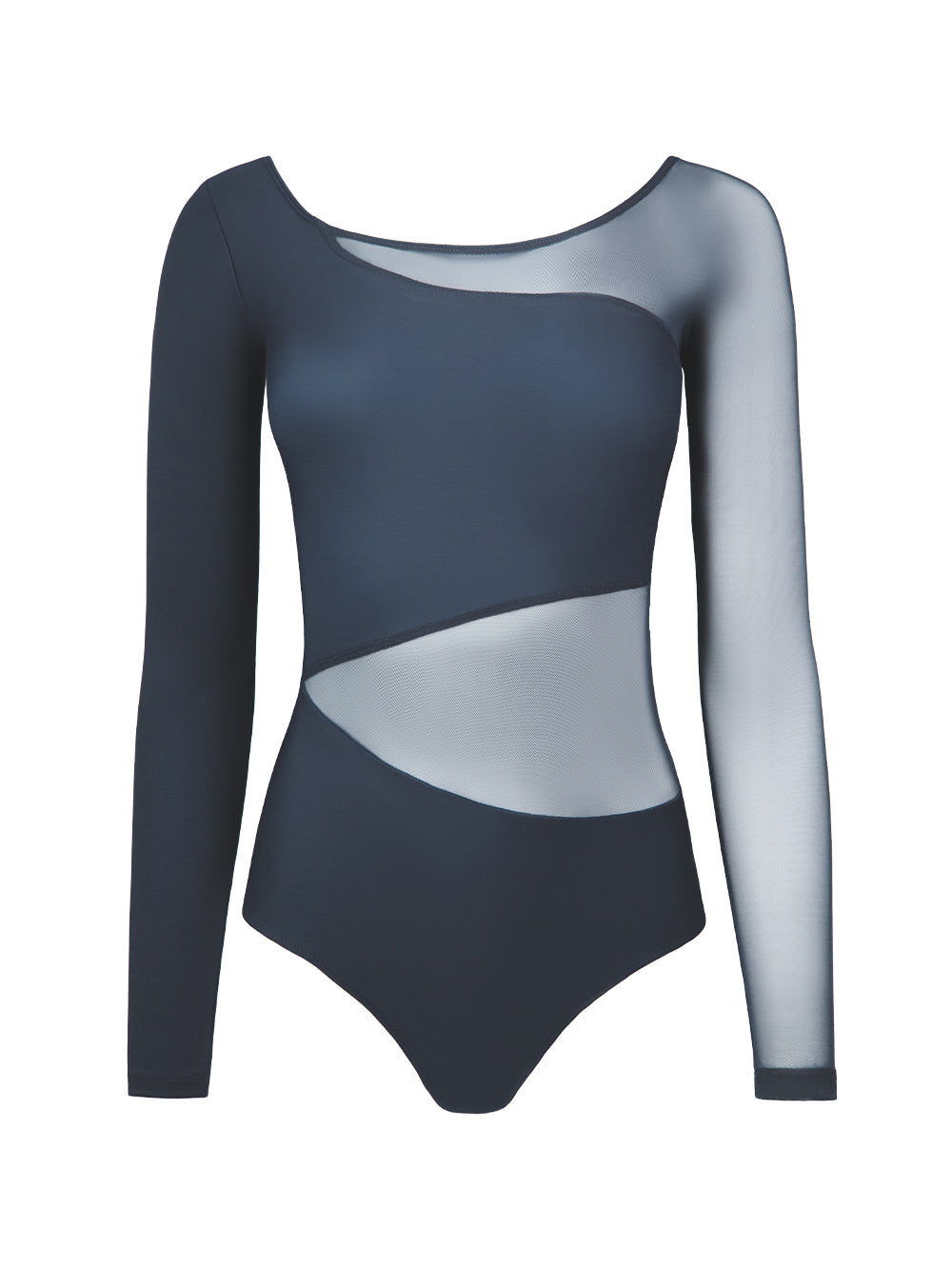 Model 3 is wearing Amelie Symphony RTW featuring S-40.8 Symphony Matte Base and Right Sleeve and M-40.8 Symphony Mesh Left Sleeve and Middle with To the Wrist Sleeves.