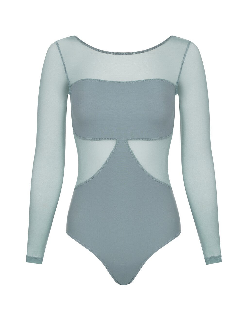 Sample is made in S-55.6 Moonstone Matte Base with M-55.6 Moonstone Mesh Top Front, Back, and To The Wrist Sleeves.