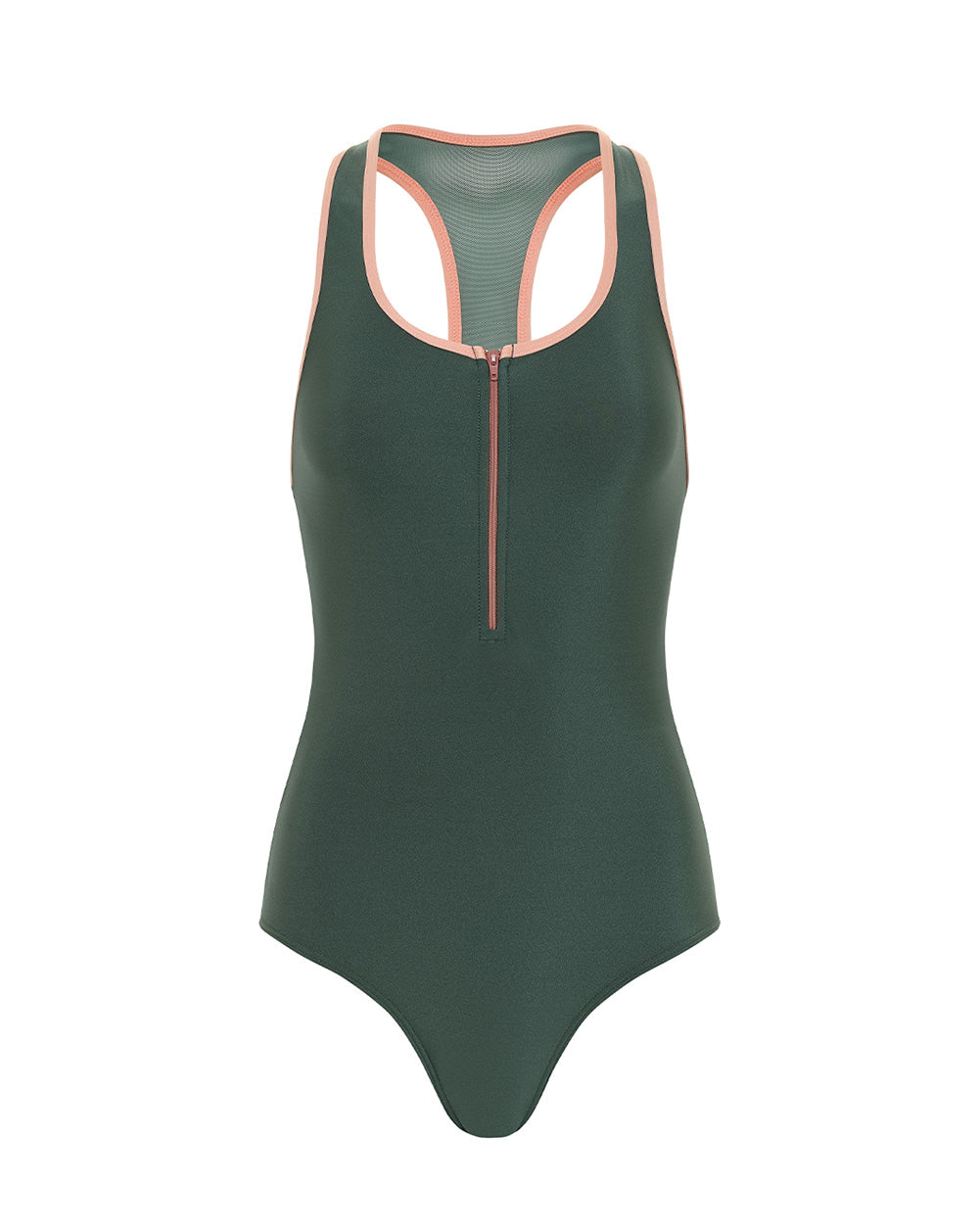 The custom Laura Leotard features a classic racerback and modern front zipper detail for sporty yet elegant look. Keep it simple and solid or mix and match your favorite colors and prints! For a cleaner appearance, is the same fabric is chosen for the Base and Back Panel, the back seam will be removed.