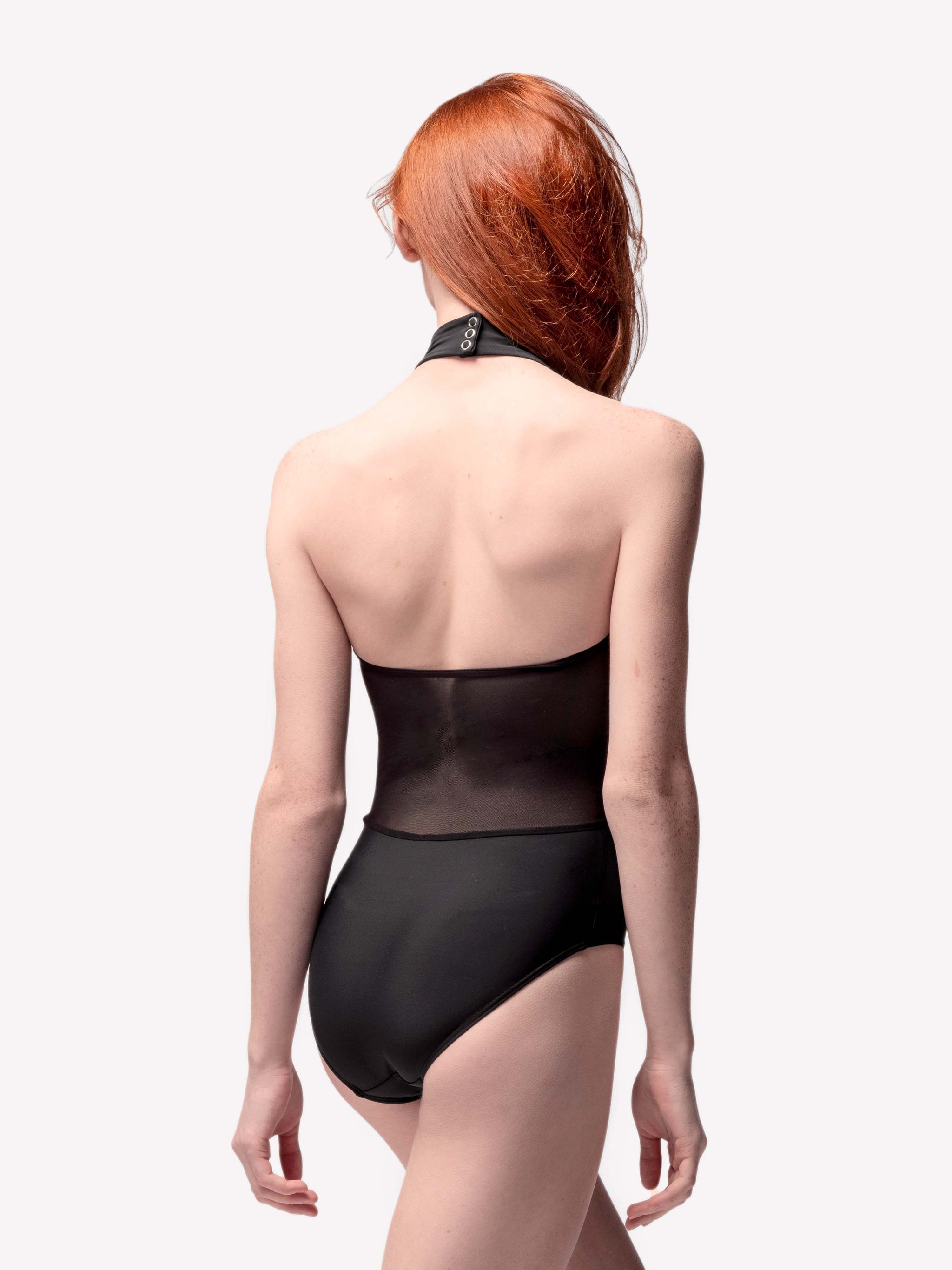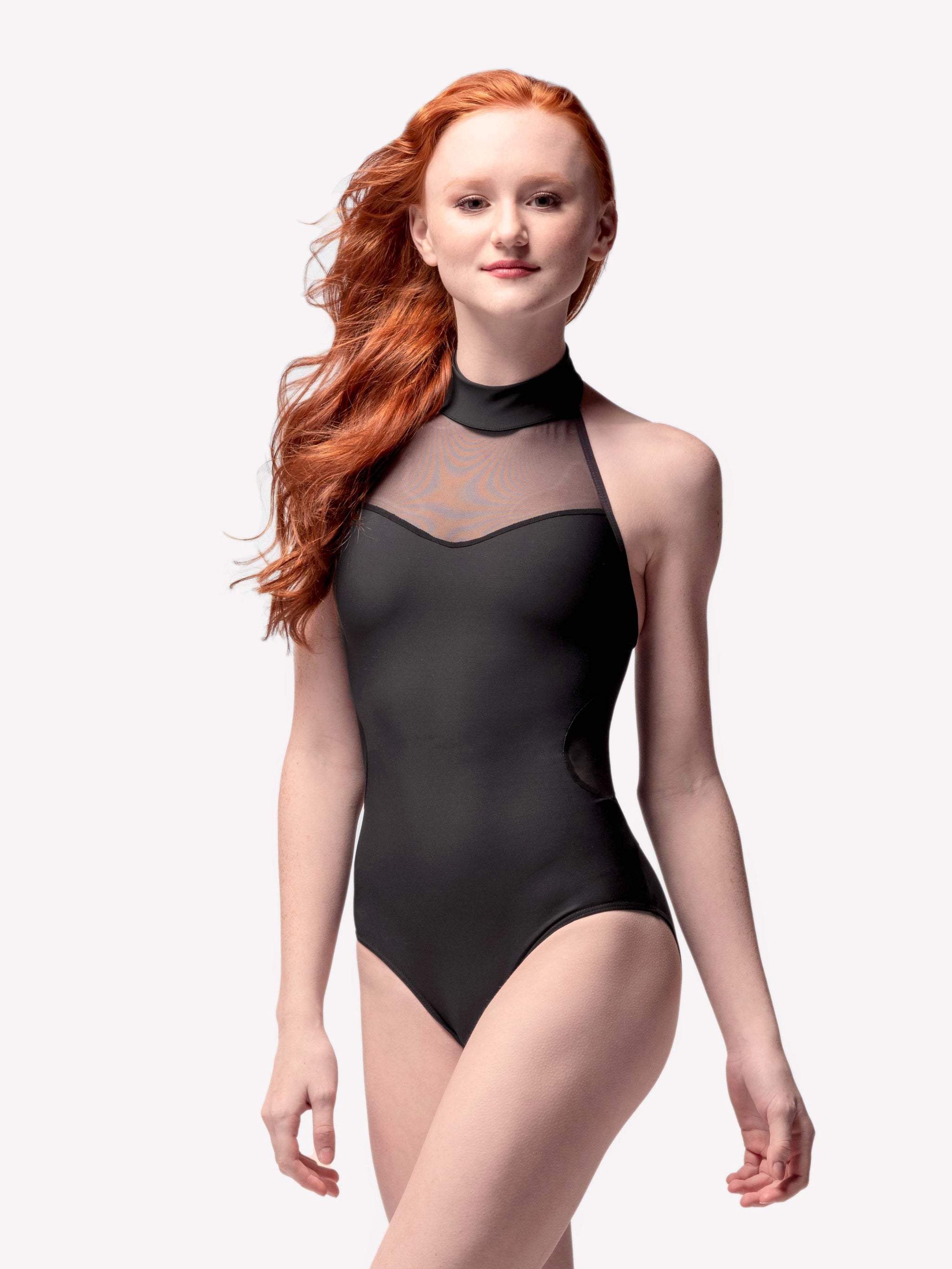 Who says that your leotard can only be one thing? Our Madison in soft black is both sophisticated and alluring. Accentuate long lines with a collared neckline and show off those beautiful muscles with the open mesh wrap-around back panel.