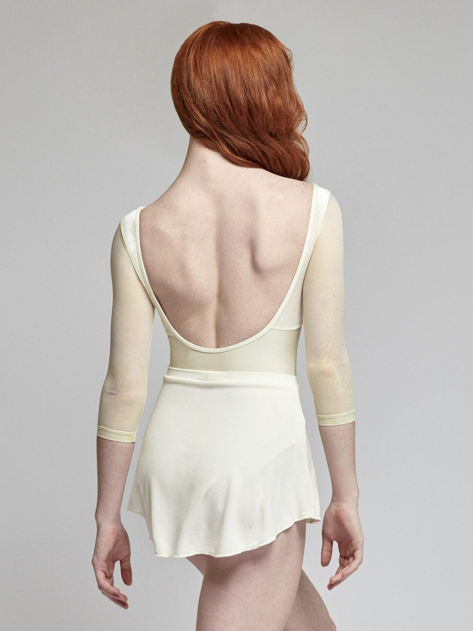 An Elevé favorite! Our versatile Tulip Skirt is made with a beautiful light ivory rayon jersey fabric that hangs and moves ever-so-nicely, with a Light Ivory Matte nylon spandex waistband. A staple for class and the studio!