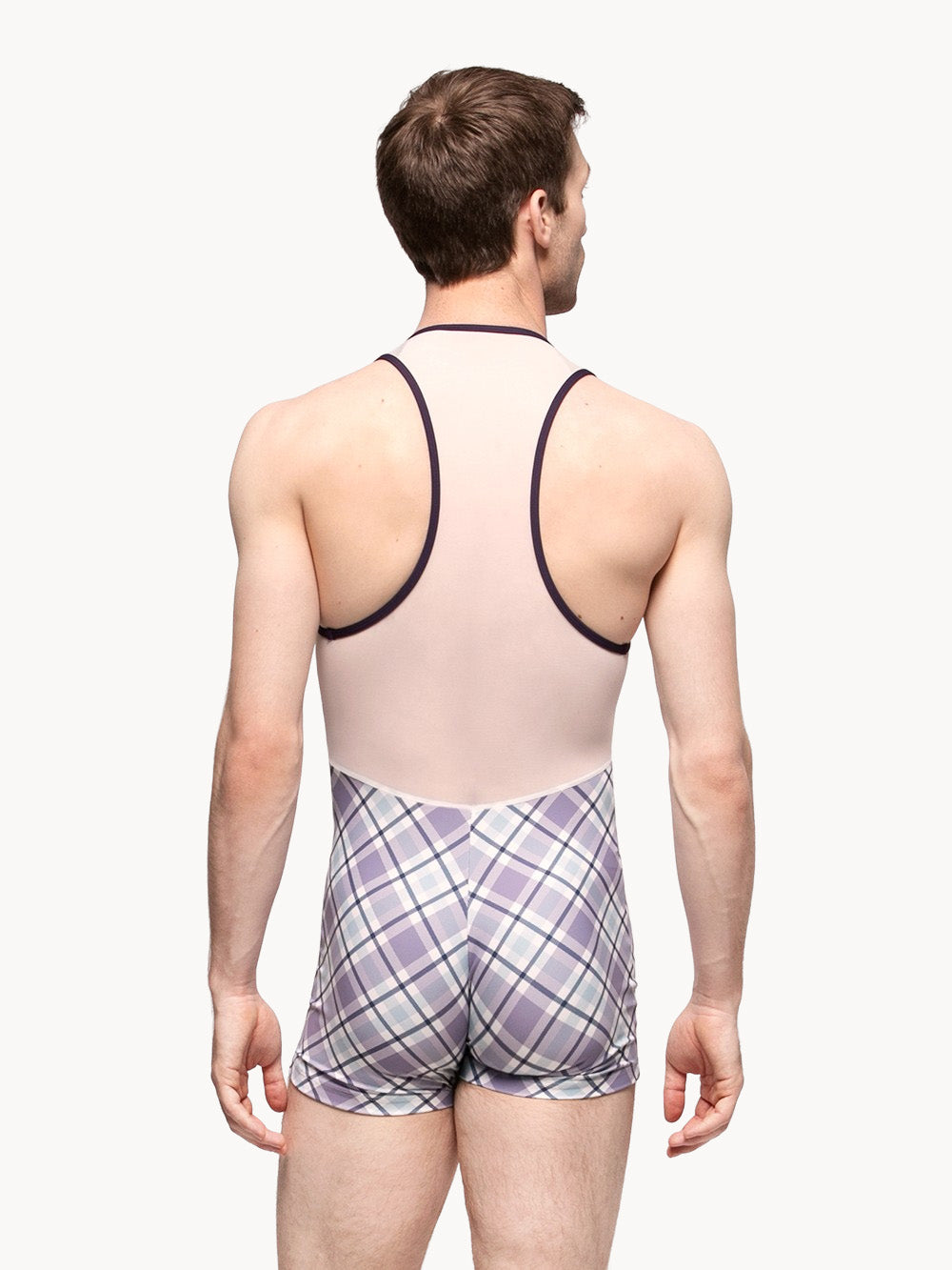 You can dance, you can jive in our Brock Biketard in Plum Plaidness featuring a White Mesh racer back with Dark Plum trim and booty length inseam.