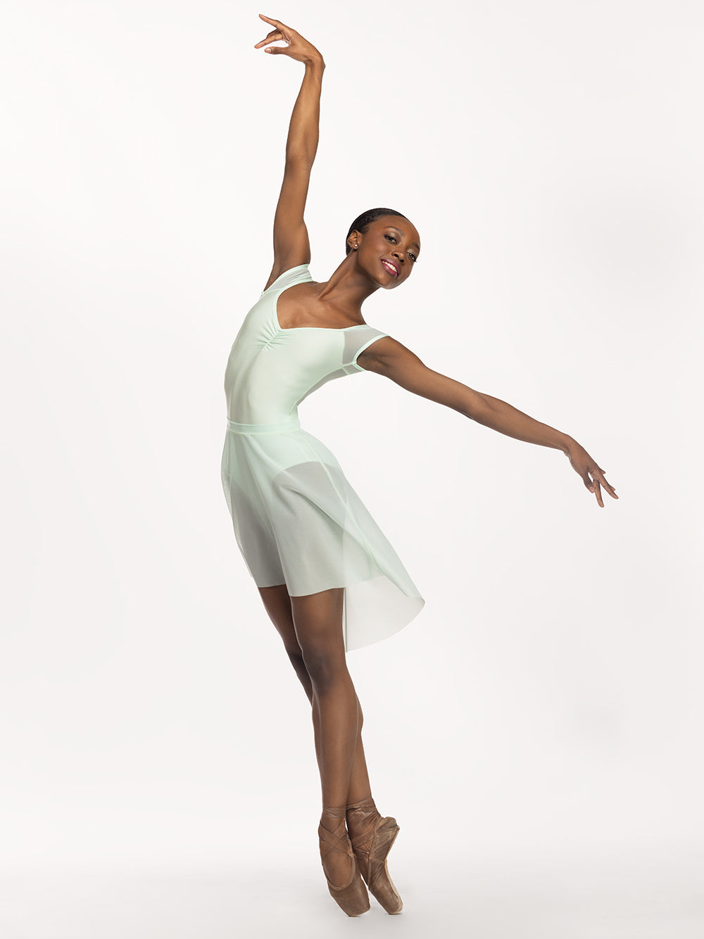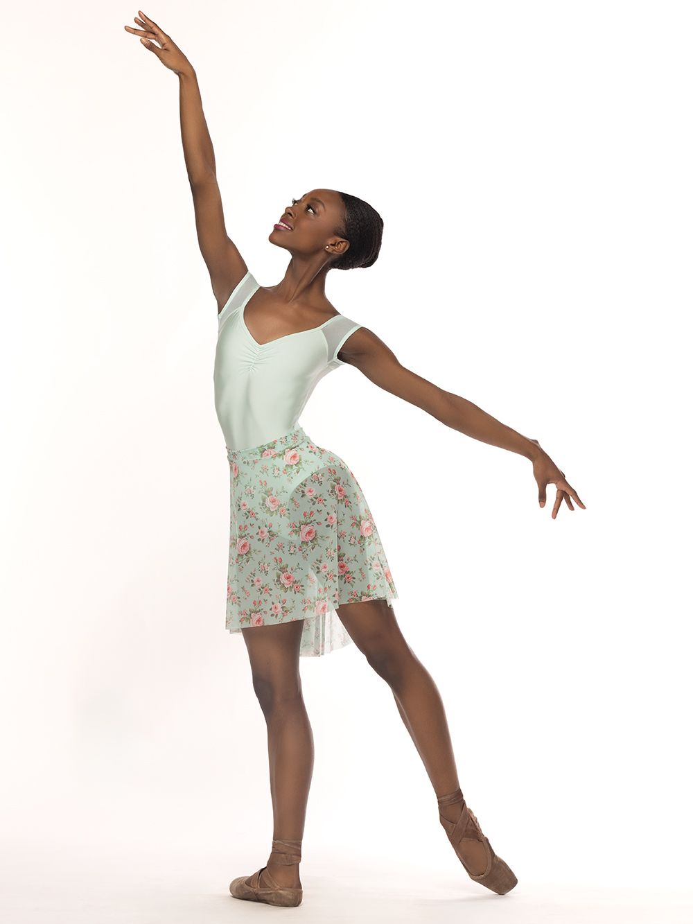 Model 2 is wearing a leotard and skirts in adult size XS.