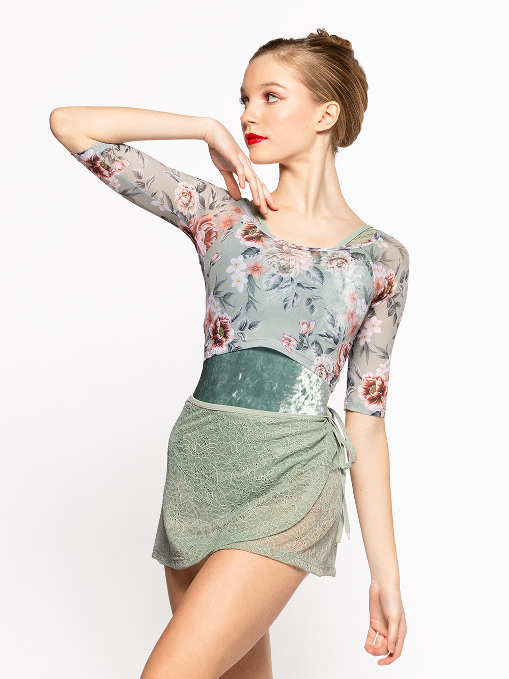 The best-selling Fabiola Leotard is back in our new Paradise Garden Crushed Velvet— a stunning twist on the classic sweetness of this delightful style. Its rich velvet texture and exquisite lace detailing make it a must-have for any dancer looking to make a memorable impression. Pair it with our Tulip Skirt Lazy Afternoon Mesh RTW or Vienna Short Wrap Skirt Paradise Garden Lace RTW, and Raglan Top Lazy Afternoon Mesh for a show-stopping layered moment.